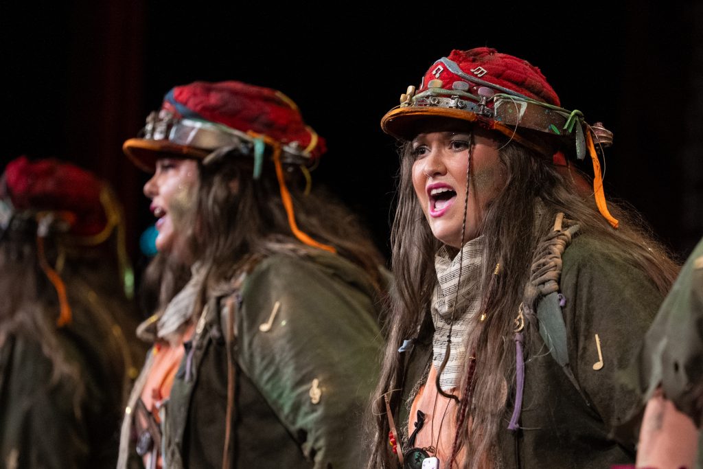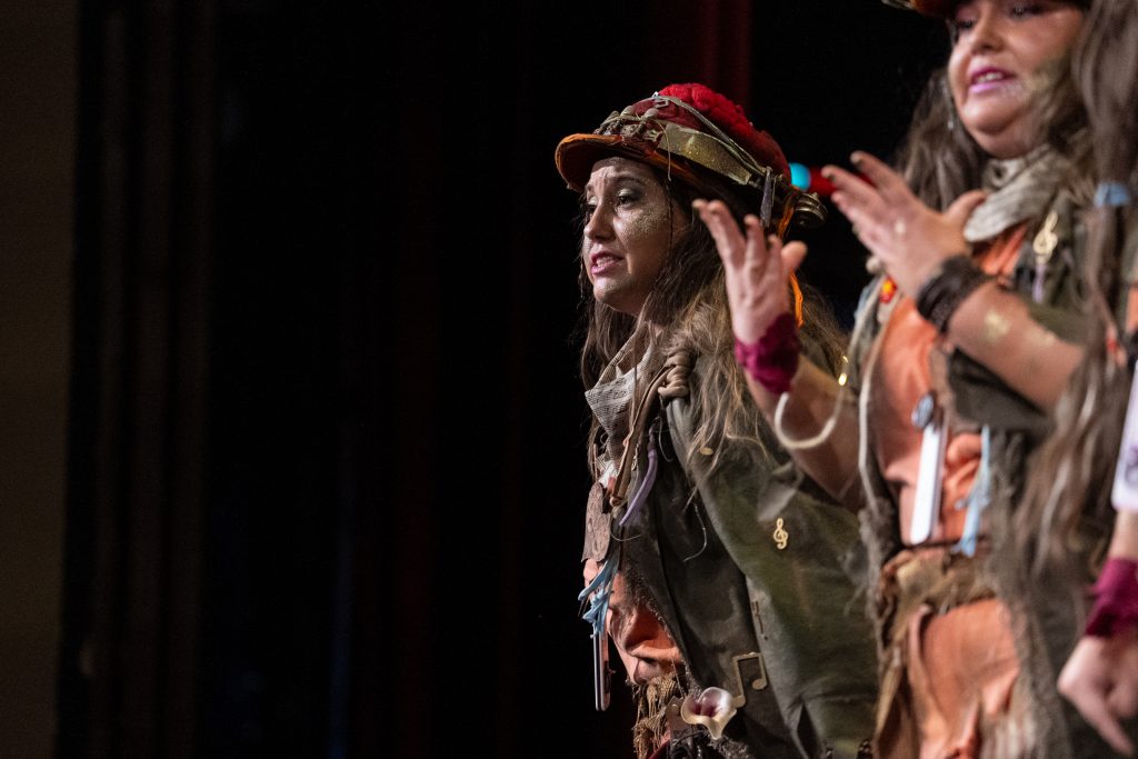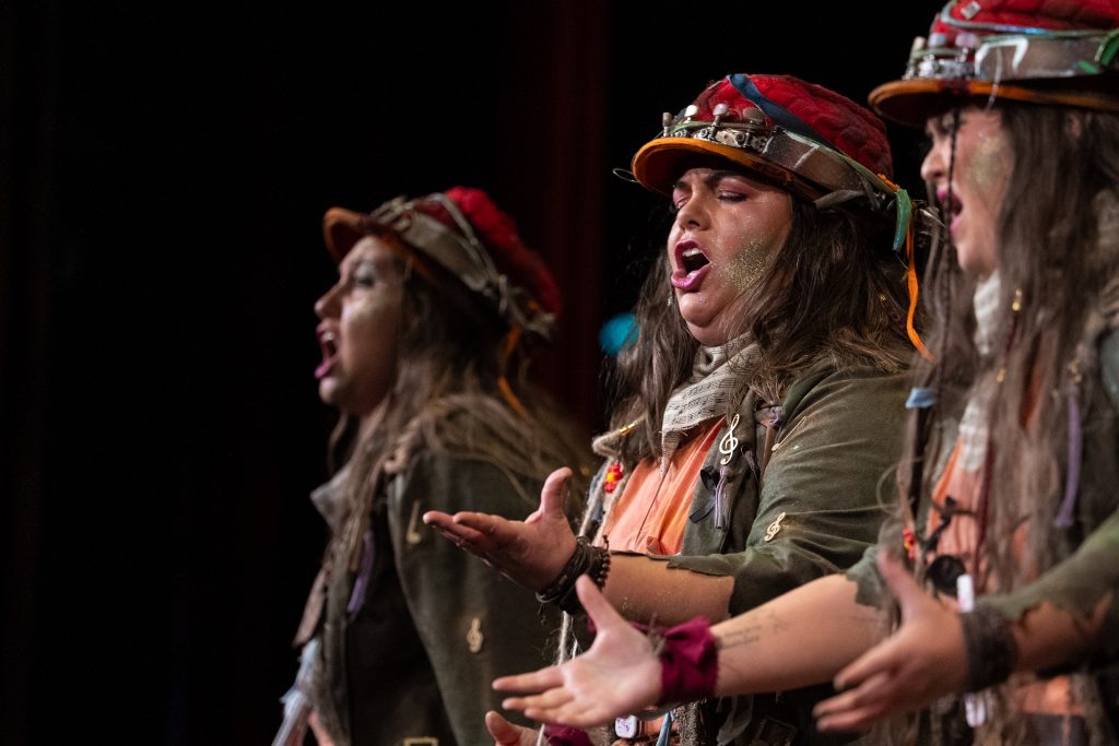 En el plano interpretativo, la comparsa muestra entrega y garra, aunque también nerviosismo. La afinación, especialmente grave, dificulta en algunos momentos la comprensión del texto. El canto se percibe intenso, a veces descontrolado, con más voluntad expresiva que precisión técnica. La escena transmite implicación emocional, pero sin dominio suficiente para elevar el conjunto.