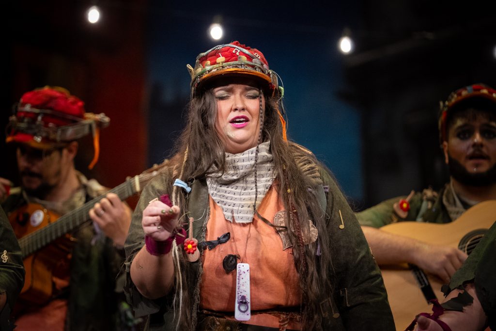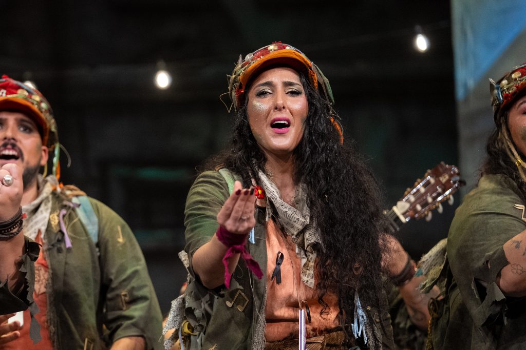 El tipo se articula en torno a artistas callejeras, presentadas como “guerrilleras musicales” que encuentran en la guitarra, los versos y la calle una forma de resistencia. Desde la presentación, el repertorio deja claro su eje conceptual: la música como refugio emocional, como altavoz social y como forma de vida frente a un mundo que prohíbe, expulsa y precariza. El planteamiento resulta comprensible desde el primer momento, aunque el arranque carece de impacto escénico y se resuelve de forma correcta pero plana.
