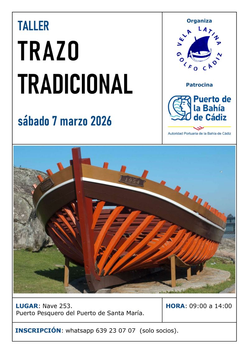 La Asociación Cultural de Vela Latina Golfo de Cádiz inició el pasado 7 de marzo su programa de talleres 2026 en Cádiz con la celebración del curso titulado “Trazo Tradicional”, una actividad centrada en el aprendizaje del diseño de embarcaciones tradicionales.