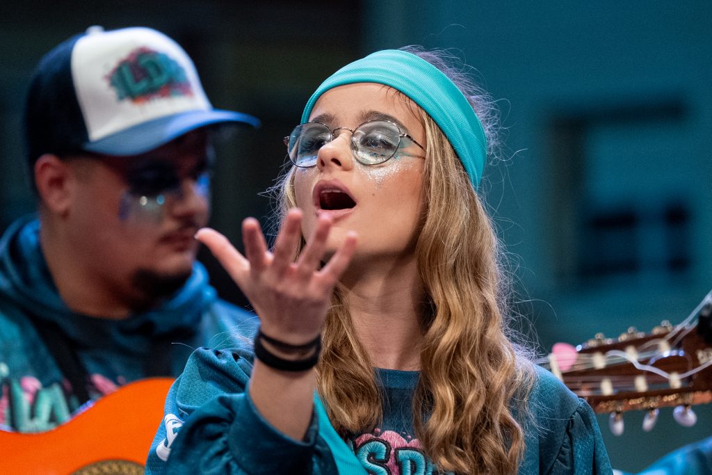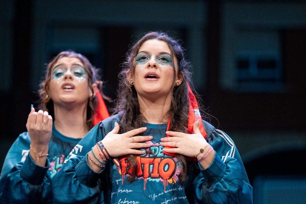 En la presentación, el grupo se definió como una banda de amigas que comienza su “curso” cuando llega febrero, estableciendo un paralelismo entre la vida escolar y el calendario carnavalesco. Ese planteamiento sirvió de hilo conductor para un repertorio que avanzó desde lo emocional hacia lo social, con letras que buscaron la identificación del público desde una óptica juvenil y reflexiva. La interpretación mostró un tono contenido, con momentos en los que se percibió el nervio propio del escenario, integrado dentro del discurso escénico.