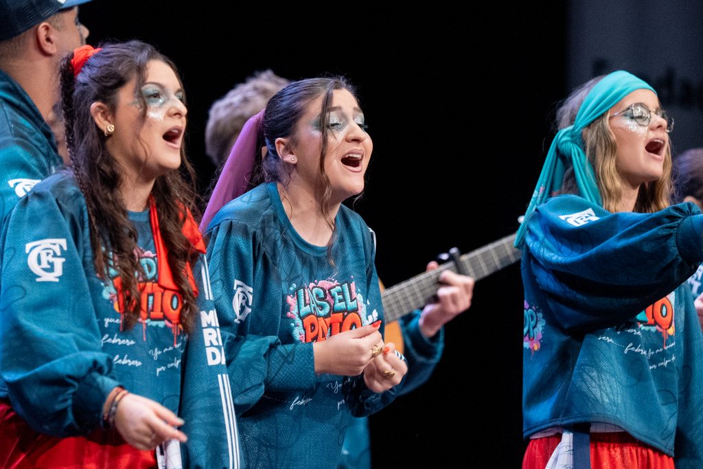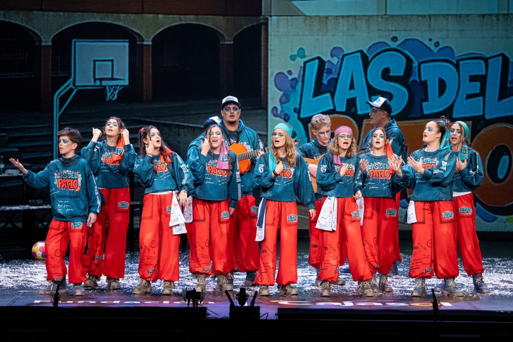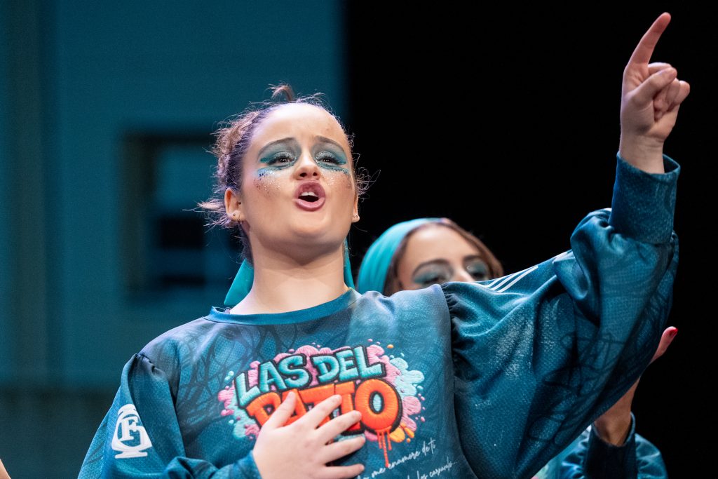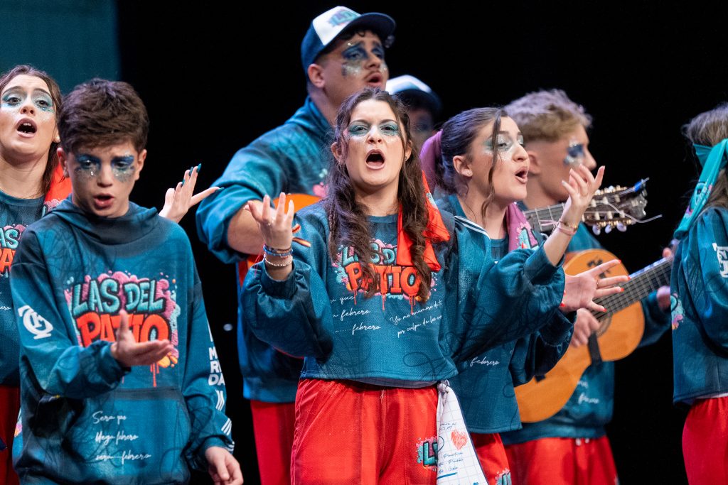 La comparsa Las del patio, procedente de Mérida, actúa en el Gran Teatro Falla dentro del COAC 2026 de cantera con un repertorio centrado en la adolescencia, la educación y el compromiso social, construido desde una propuesta escénica de pandilla escolar y una mirada formativa