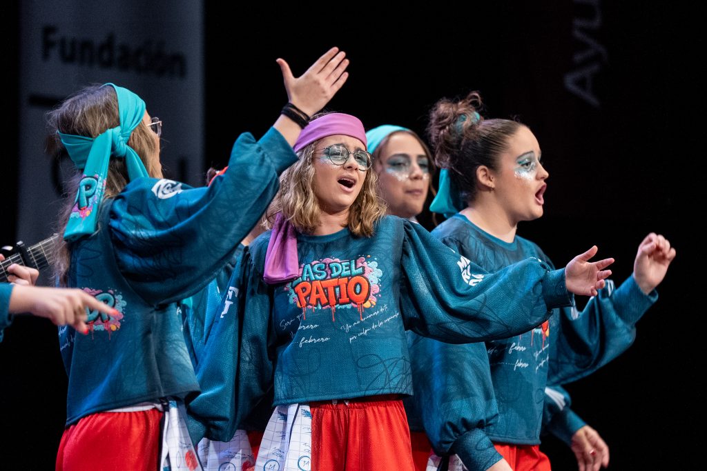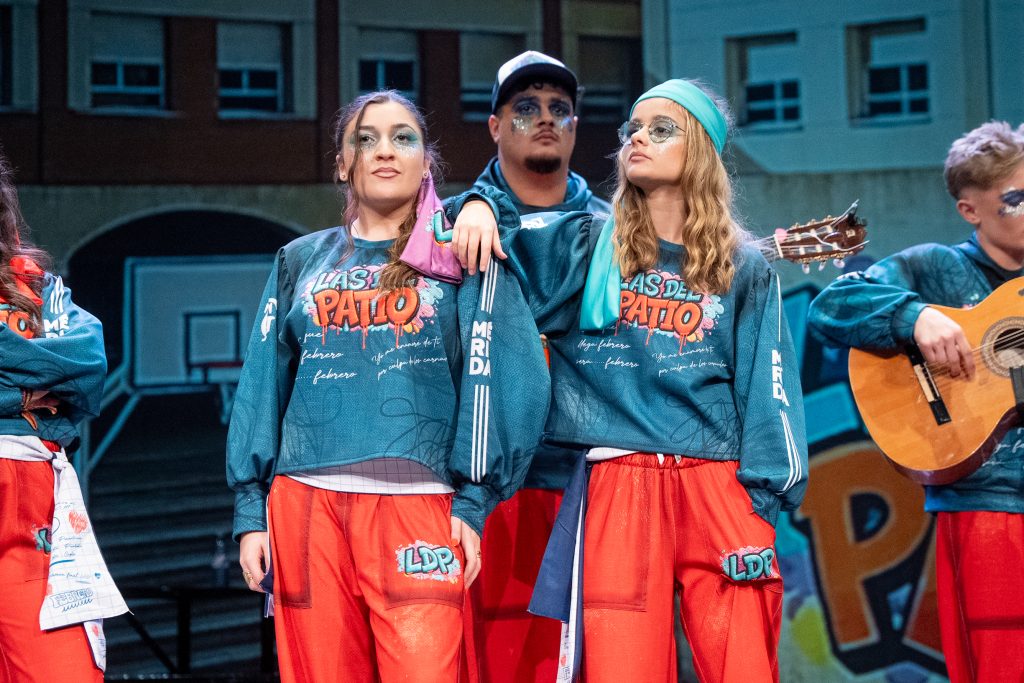 La comparsa juvenil Las del patio, llegada desde Mérida, participó en el Concurso Oficial de Agrupaciones Carnavalescas 2026 en una sesión dedicada a la cantera del Gran Teatro Falla. El grupo compareció con una propuesta claramente definida desde el tipo, una pandilla de alumnas que viven el Carnaval como punto de encuentro y como espacio de expresión, y con un repertorio que abordó cuestiones vinculadas a la adolescencia, la educación y la convivencia.
