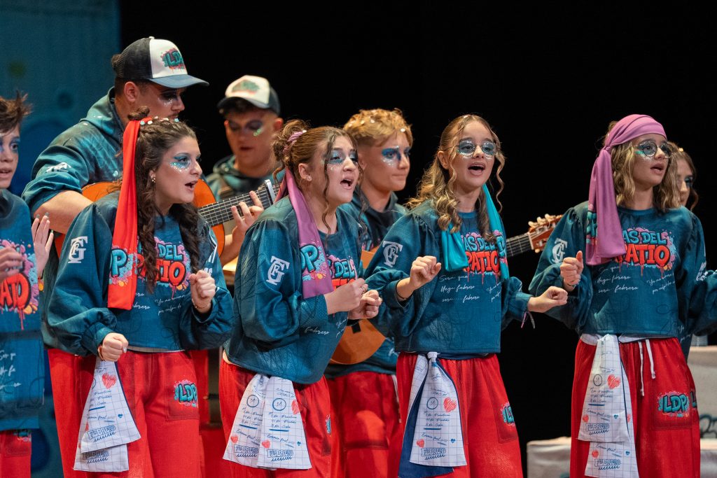 La emoción tuvo también un espacio destacado en el repertorio. Uno de los momentos más íntimos llegó con un pasodoble dedicado a la familia y a la separación de los padres. Lejos de tópicos, la letra expresó el deseo de poder compartir momentos importantes con ambos progenitores juntos, contraponiendo esa aspiración a la realidad de las familias separadas. El enfoque, sincero y directo, conectó con una vivencia común entre muchos jóvenes y reforzó el tono humano de la propuesta.