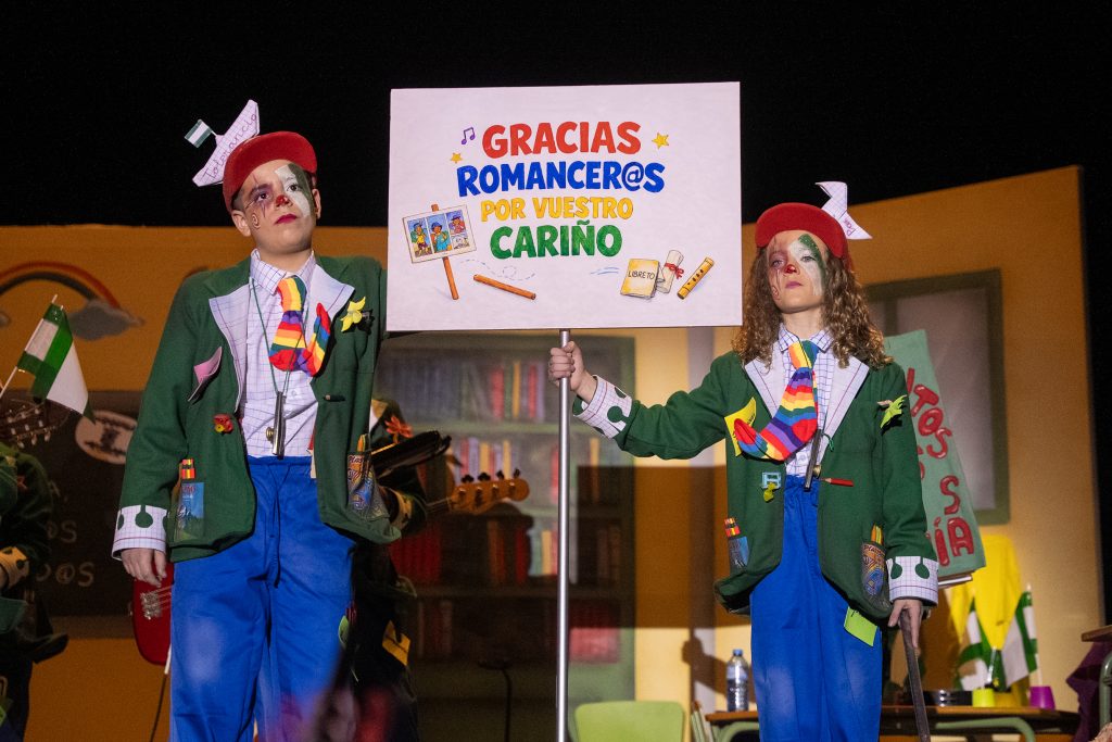 El segundo pasodoble supuso uno de los momentos más emotivos de la noche. La letra estuvo dedicada a un hermano con discapacidad auditiva, ampliando el mensaje a todas las personas sordas o con dificultades de comunicación. La puesta en escena reforzó el contenido de la copla con la presencia del lenguaje de signos sobre las tablas, subrayando que no hace falta oír para sentir, comprender o ser parte activa de la comunidad educativa. El mensaje insistió en que la verdadera barrera no es la discapacidad, sino la falta de sensibilidad de la sociedad.