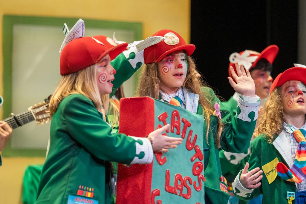 El primer pasodoble destacó por su carga simbólica al apoyarse en la bandera arcoíris como elemento narrativo. A través de sus colores, la letra fue desgranando valores como la libertad, la esperanza, la convivencia y el respeto, conectando directamente con el ideario de una escuela inclusiva. La comparsa utilizó este recurso para explicar, con un lenguaje claro y accesible, la importancia de educar desde la diversidad, sin exclusiones ni etiquetas.