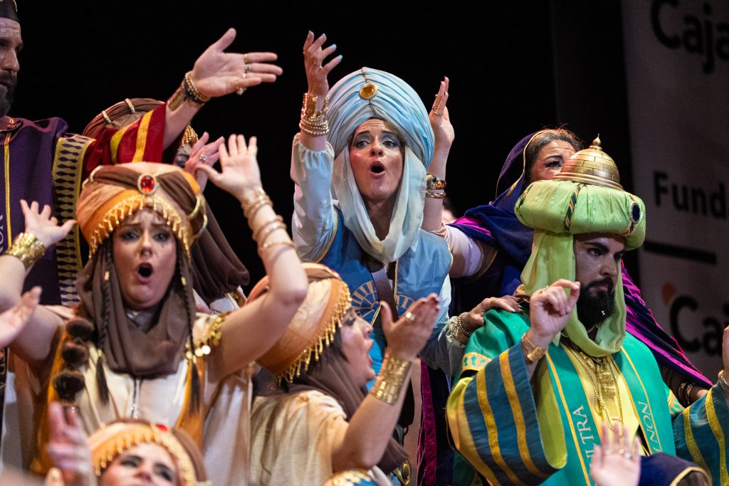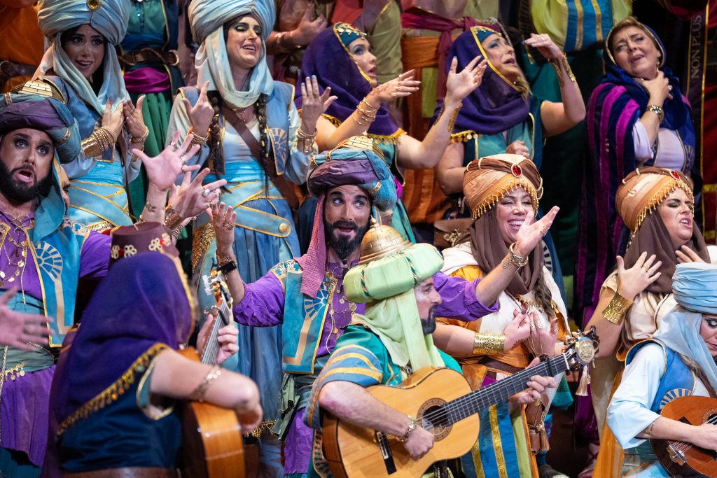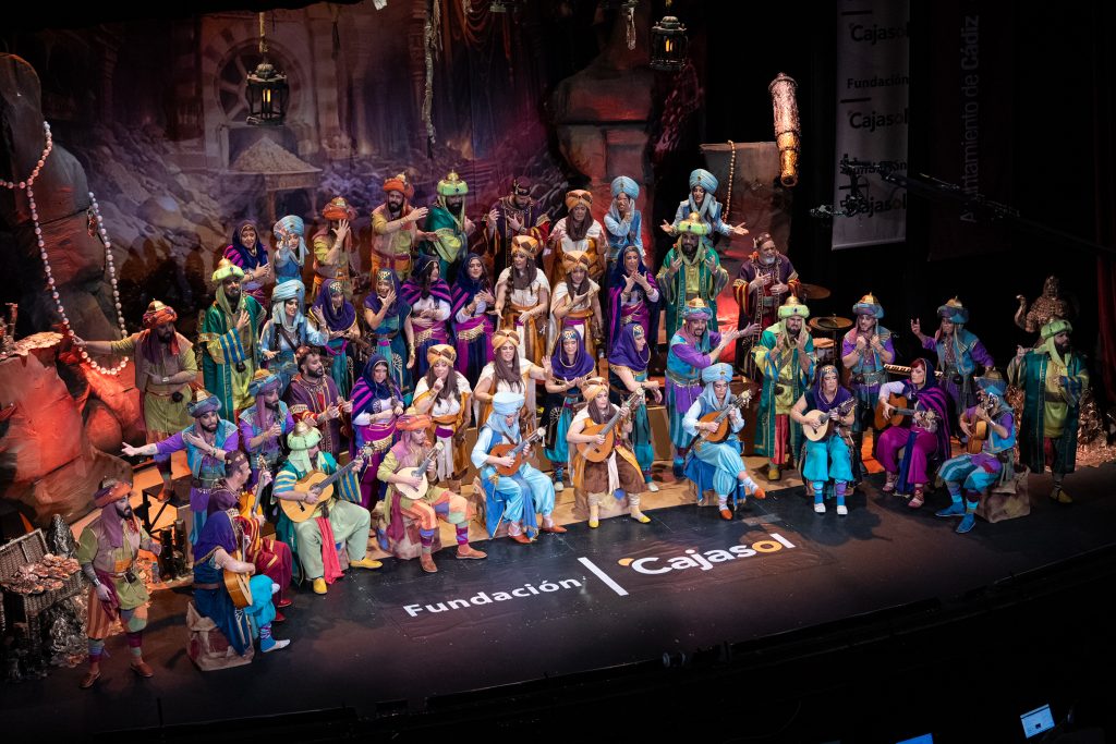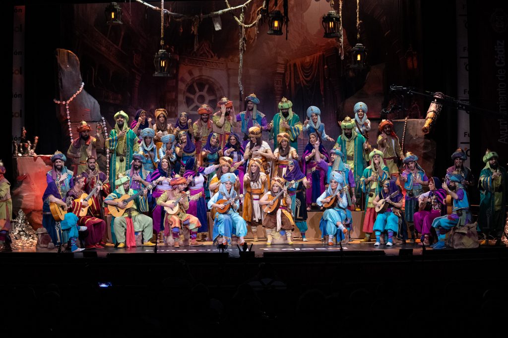 La presentación fue uno de los momentos más reconocibles del pase. Los sones arábigos iniciales y su transición hacia el tanguillo gaditano evidenciaron desde el primer momento el cuidado musical del grupo. El empaste de voces y la afinación de la orquesta sostuvieron un arranque efectivo, más destacado por lo sonoro que por su capacidad narrativa, pero suficiente para situar al público en el ambiente propuesto.