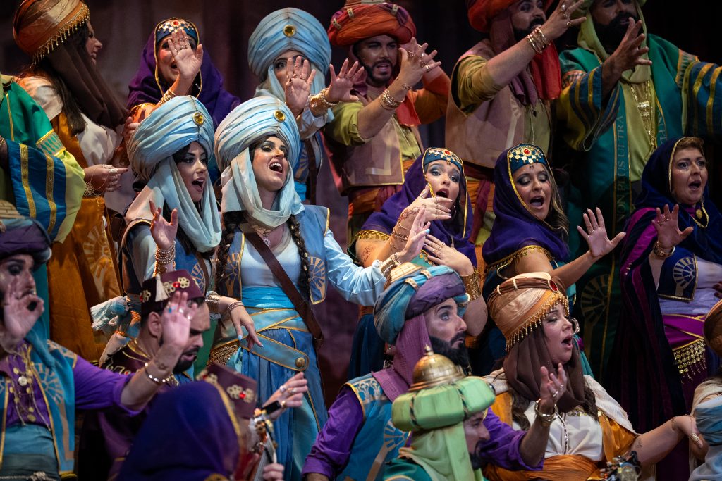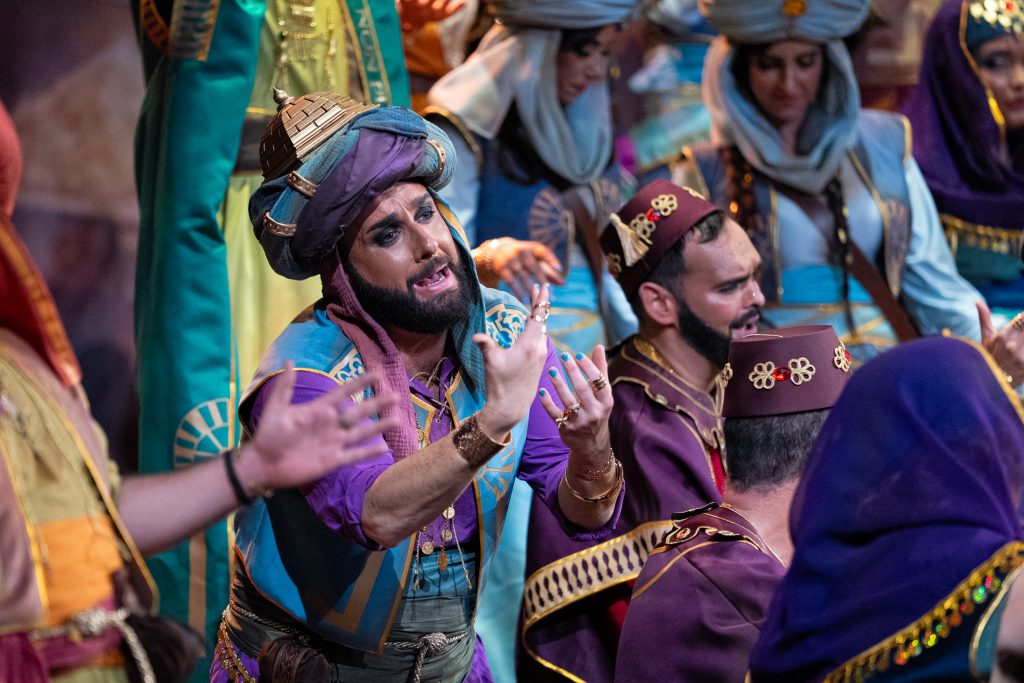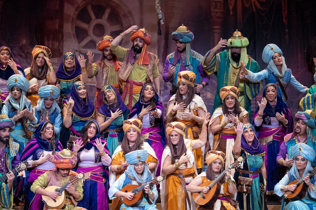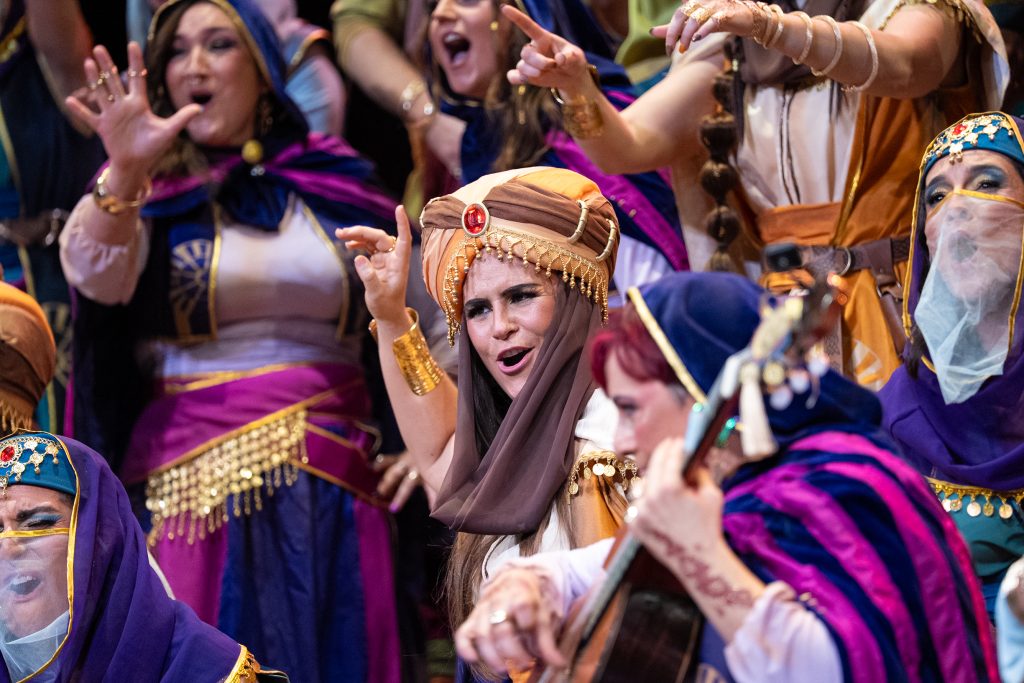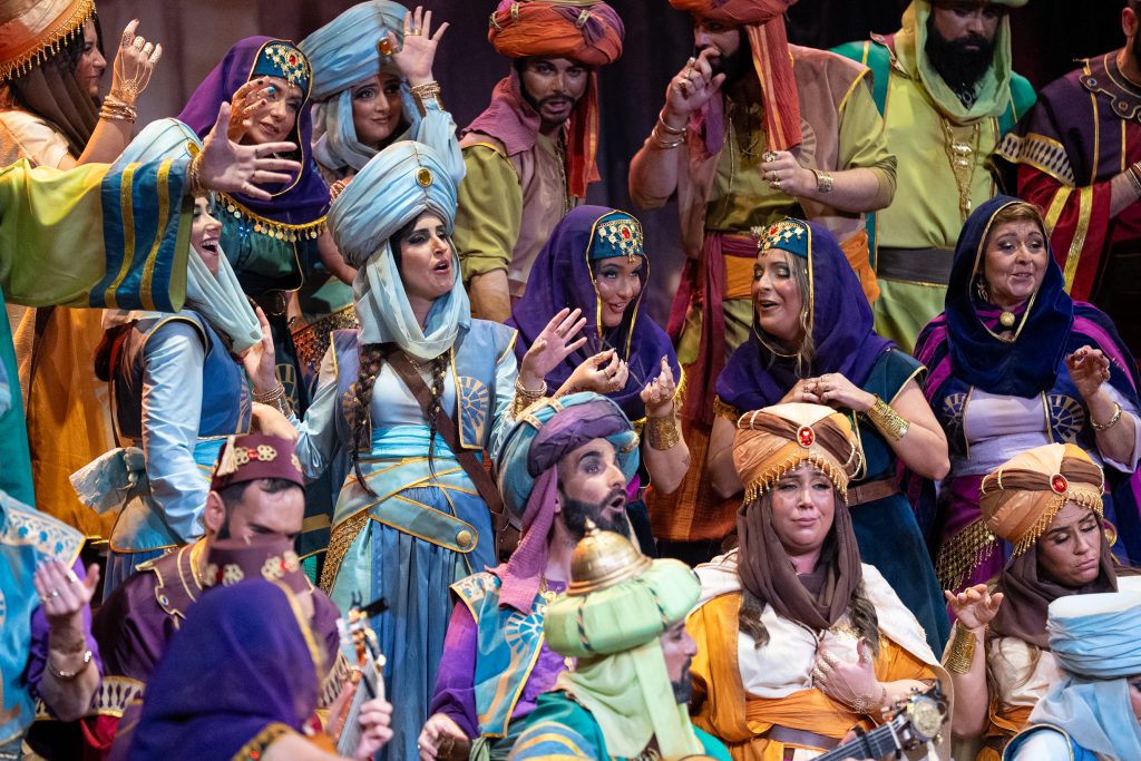 La presentación fue uno de los momentos más reconocibles del pase. Los sones arábigos iniciales y su transición hacia el tanguillo gaditano evidenciaron desde el primer momento el cuidado musical del grupo. El empaste de voces y la afinación de la orquesta sostuvieron un arranque efectivo, más destacado por lo sonoro que por su capacidad narrativa, pero suficiente para situar al público en el ambiente propuesto.