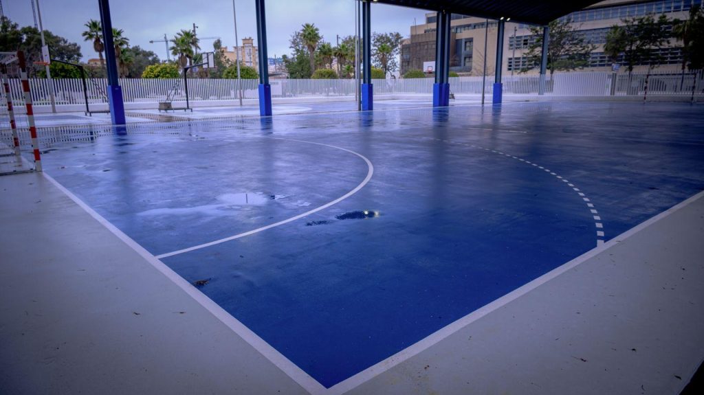 La intervención incluye también la sustitución de las antiguas vallas perimetrales por cerramientos metálicos de nueva instalación, la renovación de porterías y canastas, y la incorporación de iluminación led para facilitar el uso vespertino de las instalaciones y reducir el consumo energético.