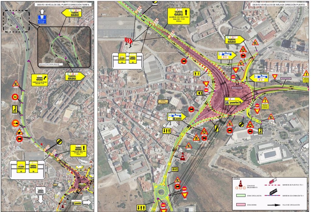El Ministerio de Transportes y Movilidad Sostenible ha anunciado que a partir del lunes 21 de abril se producirán varias afectaciones al tráfico debido a las obras de duplicación de la N-350 y de acceso sur al puerto de Algeciras (Cádiz) que se están desarrollando, y que influirán a la circulación en la glorieta Los Pastores-Saladillo de la N-340.
