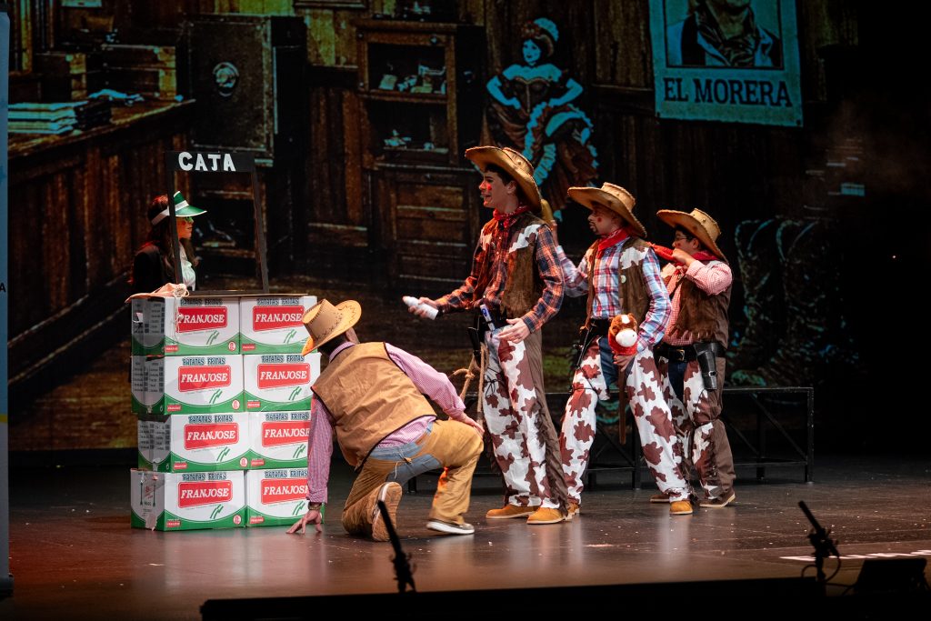 El cuarteto gaditano Las verdades del vaquero cierra una sesión de semifinal juvenil del COAC 2026 con una parodia ambientada en el Oeste y un atraco bancario convertido en sátira, combinando ritmo escénico, referencias actuales y mirada juvenil