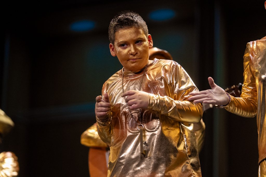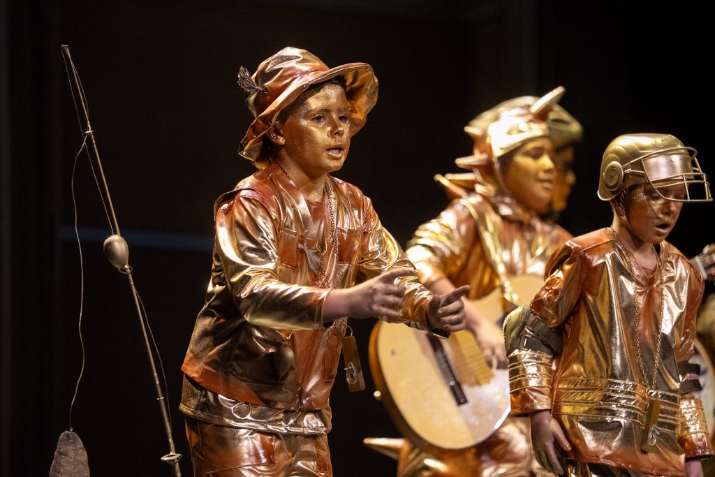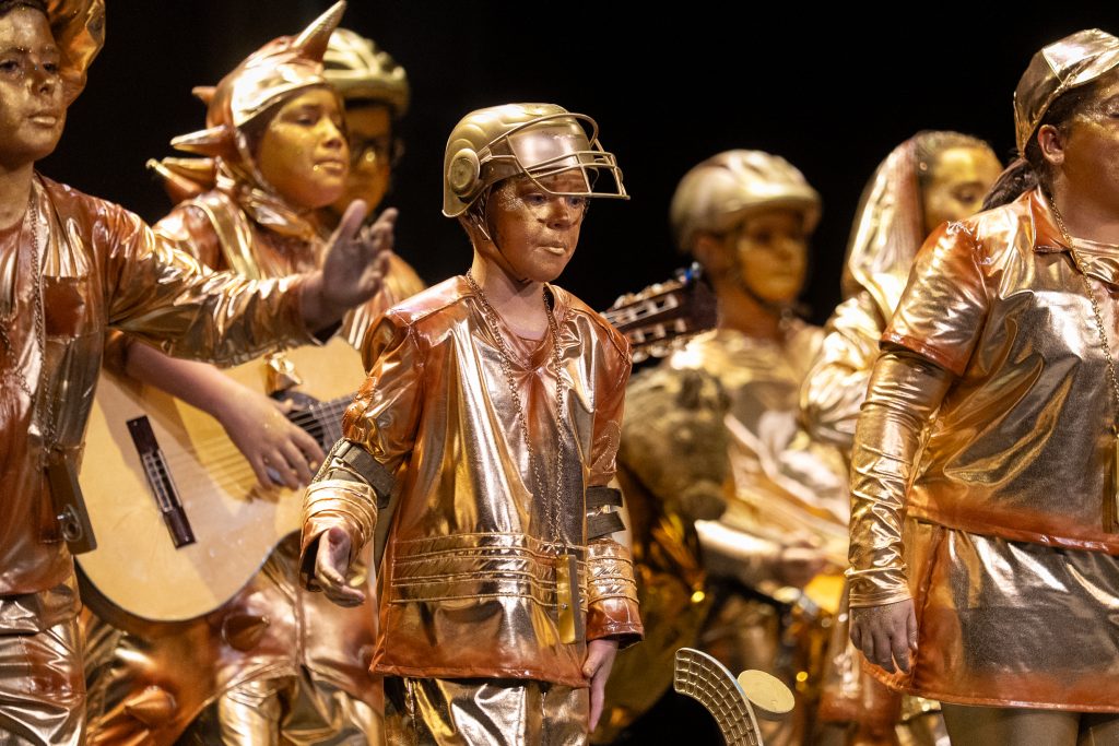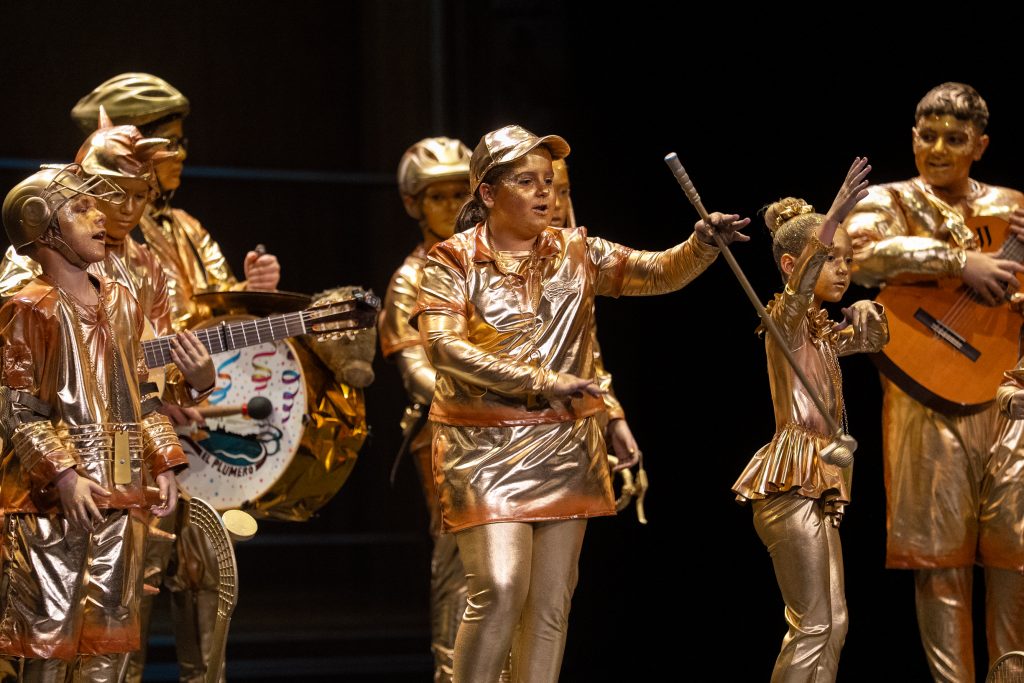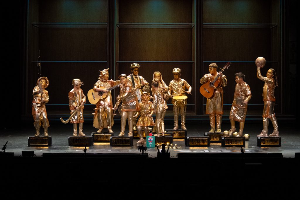 La presentación, construida sobre la conocida rumba de los pies quietos, sirvió para explicar el tipo con ironía. Los niños se definieron como premios que acaban colocados en las estanterías del salón, símbolos de una obsesión adulta por acumular medallas y reconocimientos. El arranque fue dinámico y conectó rápidamente con el público gracias a un planteamiento claro y reconocible.
