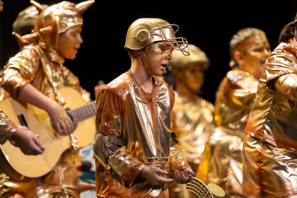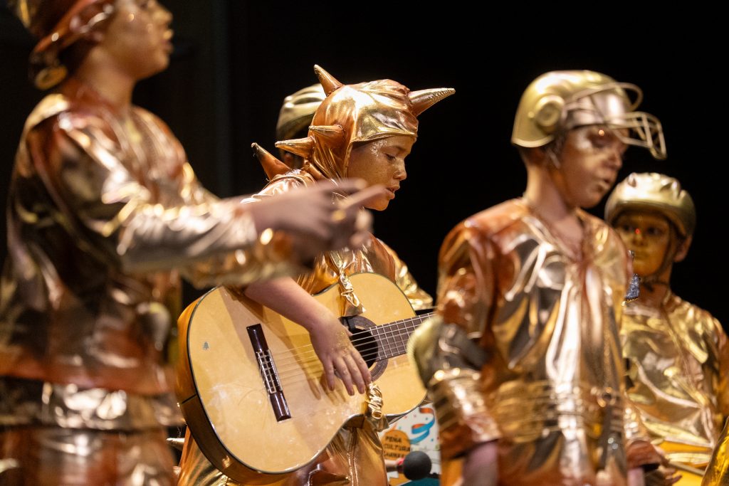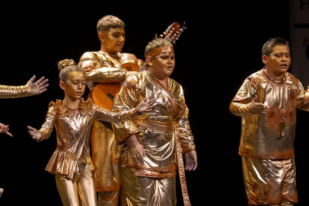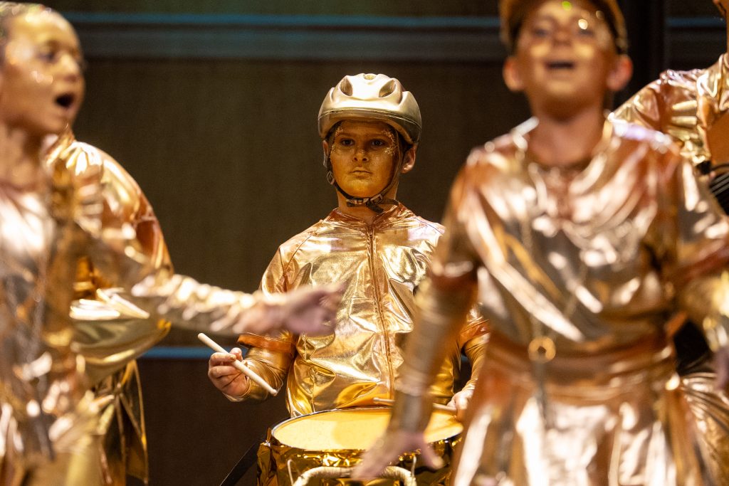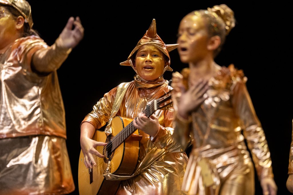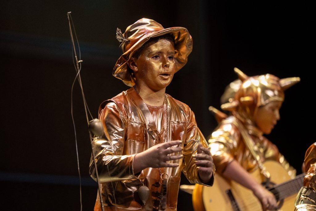 La presentación, construida sobre la conocida rumba de los pies quietos, sirvió para explicar el tipo con ironía. Los niños se definieron como premios que acaban colocados en las estanterías del salón, símbolos de una obsesión adulta por acumular medallas y reconocimientos. El arranque fue dinámico y conectó rápidamente con el público gracias a un planteamiento claro y reconocible.