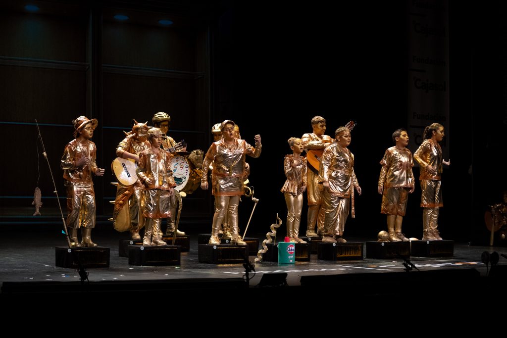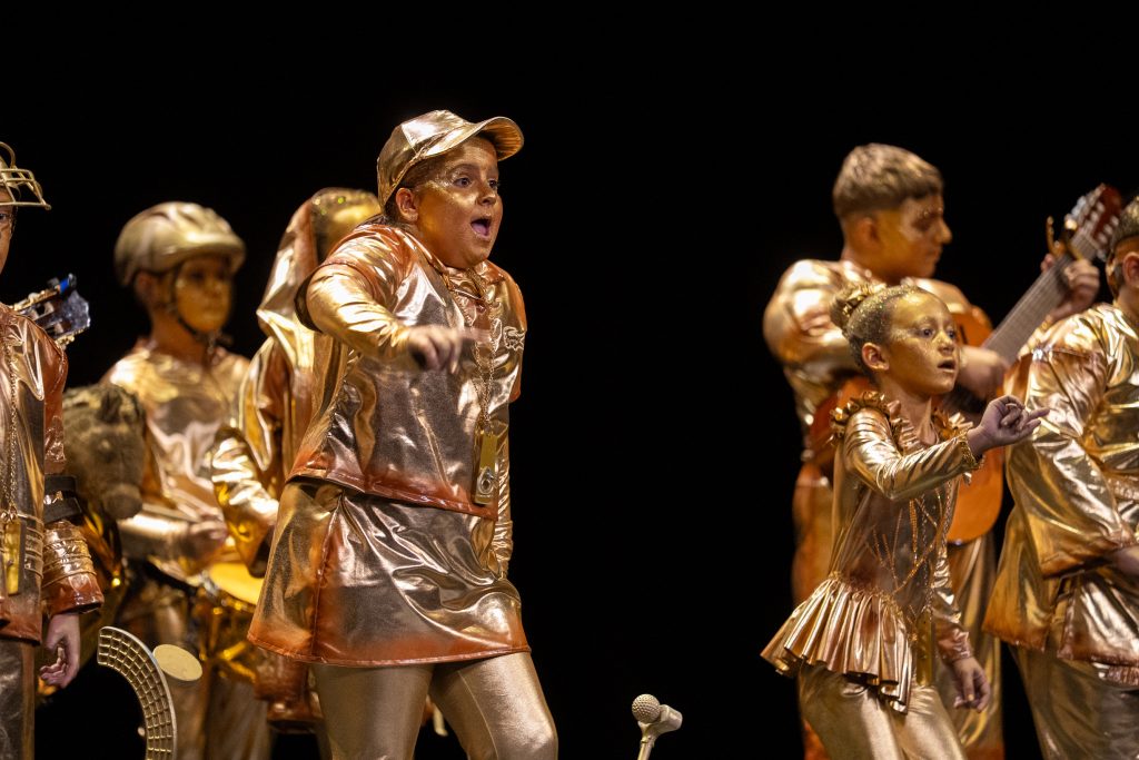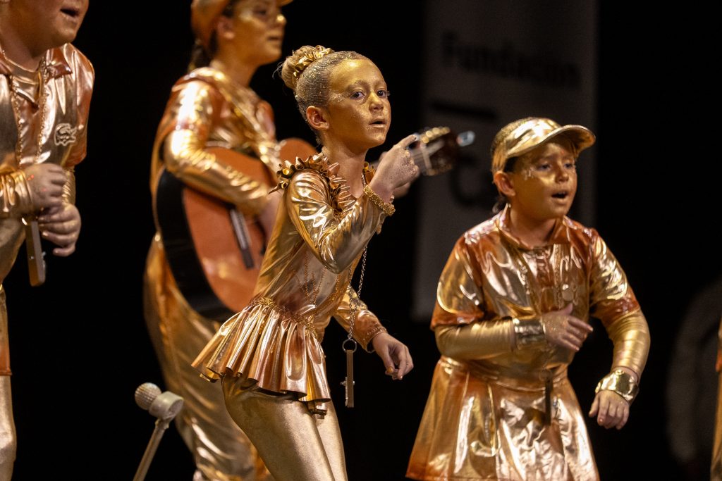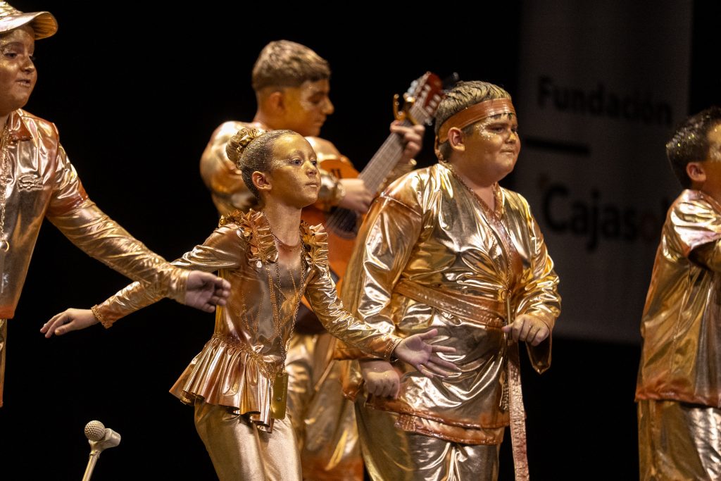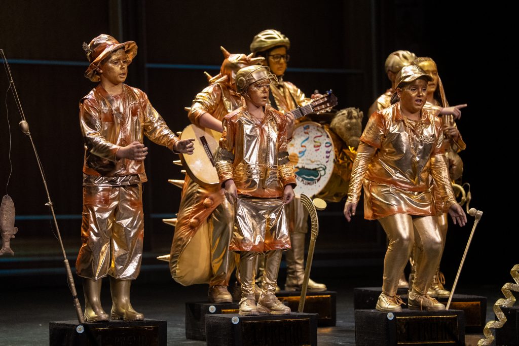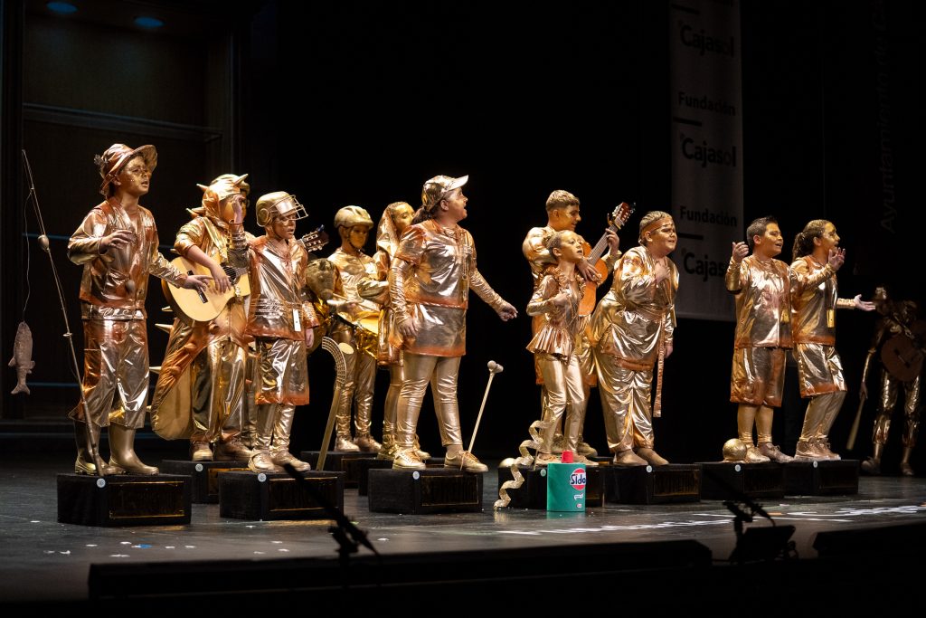El popurrí mantuvo la línea irónica del repertorio, jugando con la idea de ser “de oro” y, aun así, sentirse fuera de lugar cuando el verdadero valor está en otras cosas. La chirigota cerró su actuación reforzando el mensaje de que no todo debe medirse en premios ni trofeos, especialmente cuando se trata de la infancia.