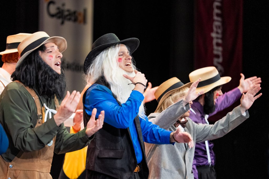 La chirigota Los amísh del mono, fuimos piononos: la decepción, de Cádiz, alcanzó la Gran Final del COAC 2026 reafirmando una propuesta muy marcada por la autoría de Alejandro Pérez Sánchez. El grupo compareció en el Gran Teatro Falla con una puesta en escena mínima, optando por la llamada “cámara negra” y prescindiendo de elementos escénicos, una decisión coherente con el discurso que atraviesa todo el repertorio y que sitúa la palabra y la intención por delante del envoltorio.