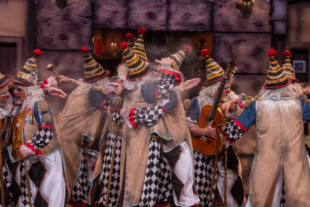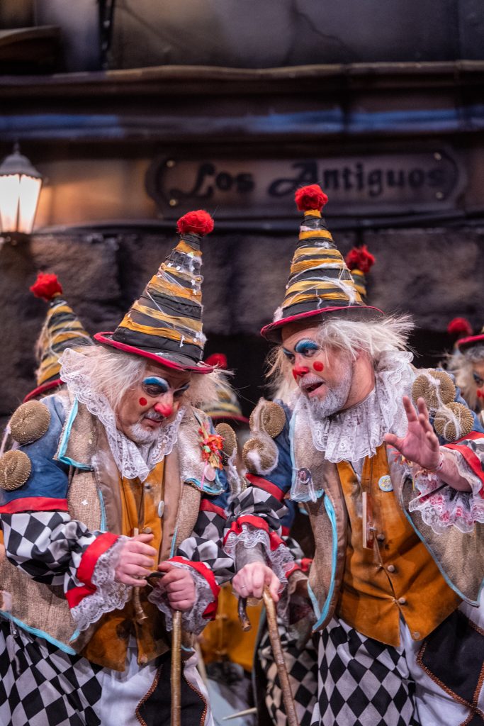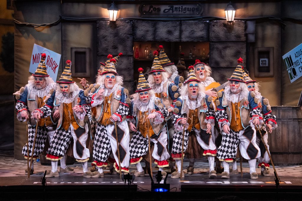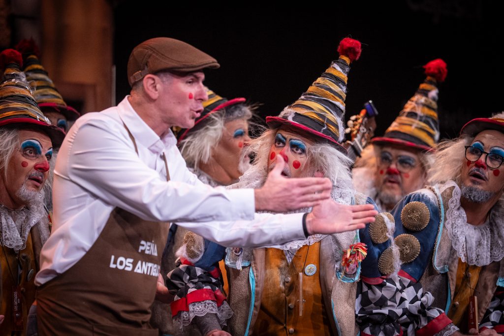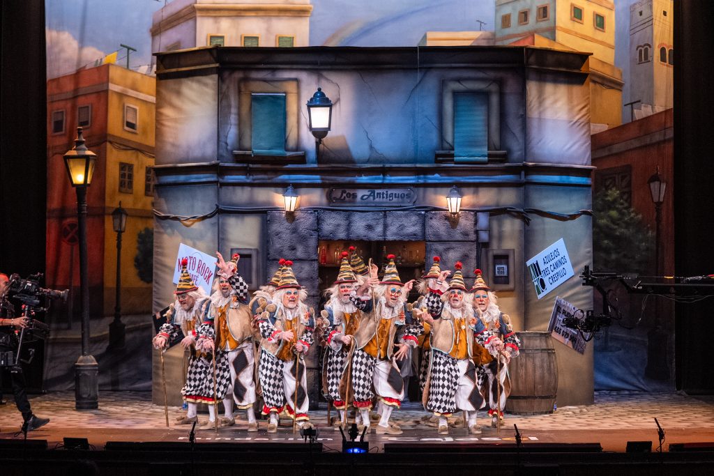 La chirigota ‘Los antiguos’, con autoría en letra de Iván Romero Castellón y Carlos Pérez Pérez y música del propio Carlos Pérez, compareció en el Gran Teatro Falla con una defensa explícita del canon chirigotero tradicional. El grupo tomó como escenario una peña amueblada a la antigua usanza, reivindicando un modelo que consideran en peligro frente a lo que denominan “gastronomía carnavalera” y al cierre progresivo de peñas en la ciudad.