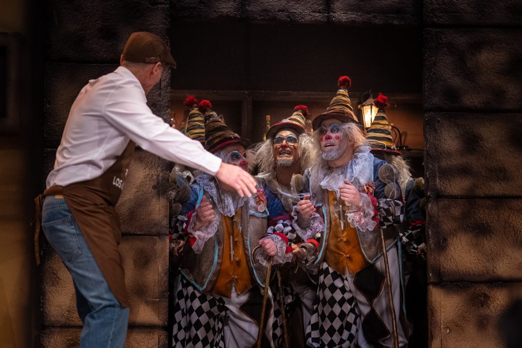 Al margen de las letras, el grupo introdujo un personaje “externo” —un joven encargado de modernizar la peña— que actuó como regulador metateatral, sugiriendo cómo deberían sonar los pasodobles “de hoy” y confrontando la visión tradicional de los protagonistas. Ese dispositivo permitió contextualizar la batalla simbólica que atravesó toda la actuación: lo antiguo frente a lo moderno, lo clásico frente a lo experimental, la peña frente a la red social. La frase “el que se quiera reír que vaya a ver Los Morancos; yo soy chirigotero, no payaso” sintetizó la posición estética del grupo.