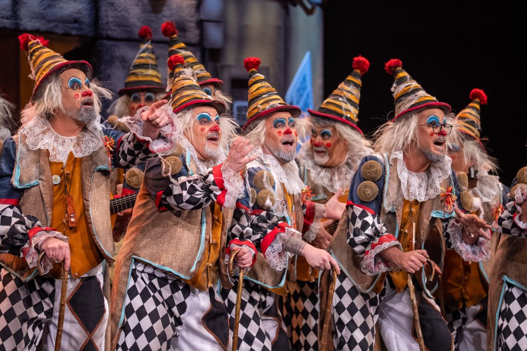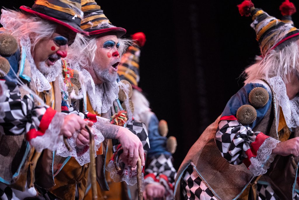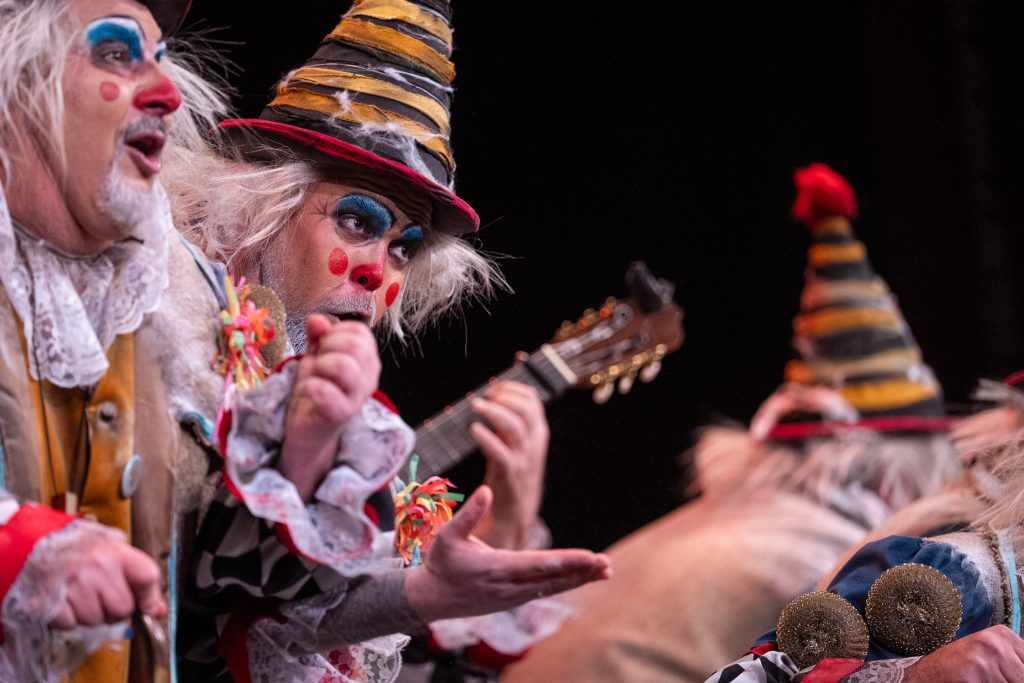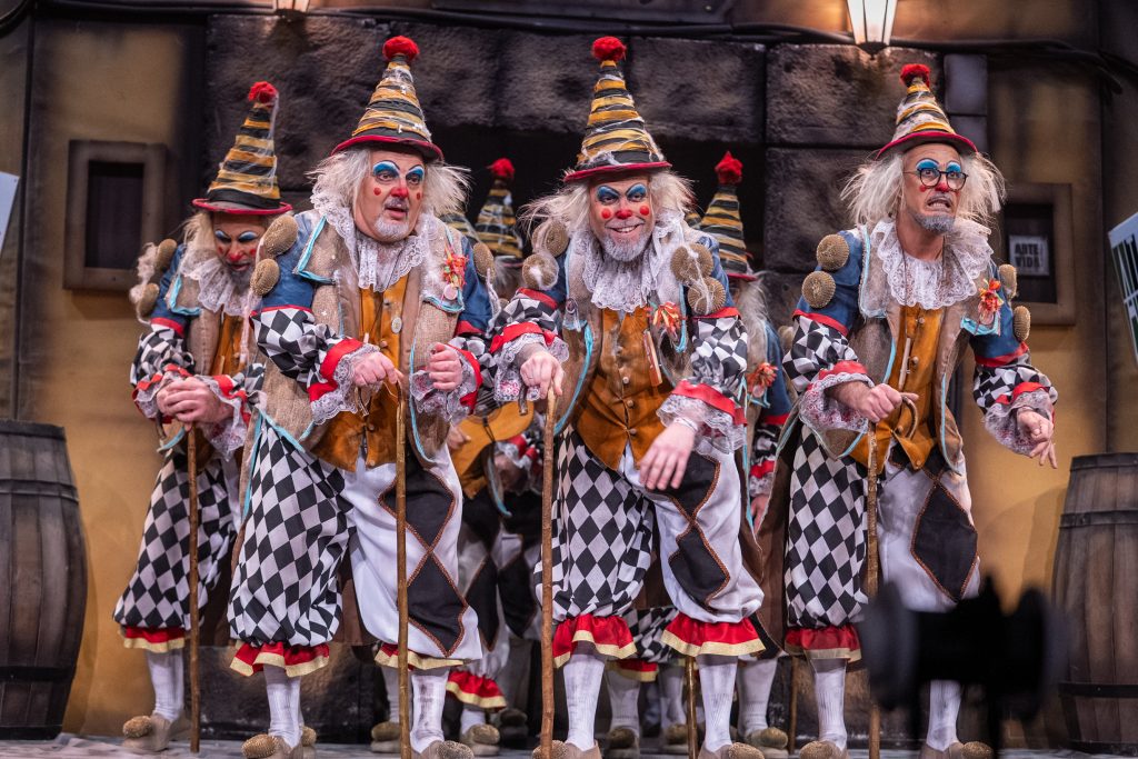 La presentación introdujo con claridad la tesis del repertorio: ser viejo no es ser obsoleto, sino guardar un modo de hacer. El tipo —peñistas chirigoteros de la Viña— activó un localismo sentimental que remitía a barritas de fórmica, sillitas bajas, cortinas de araña y cerveza servida sin modernidades. La primera cuarteta funcionó como declaración de principios (“a los antiguos no los van a poner con espuma de coco ni gastrobares”), reafirmando que el repertorio no iba a plegarse a modas ni artificios.