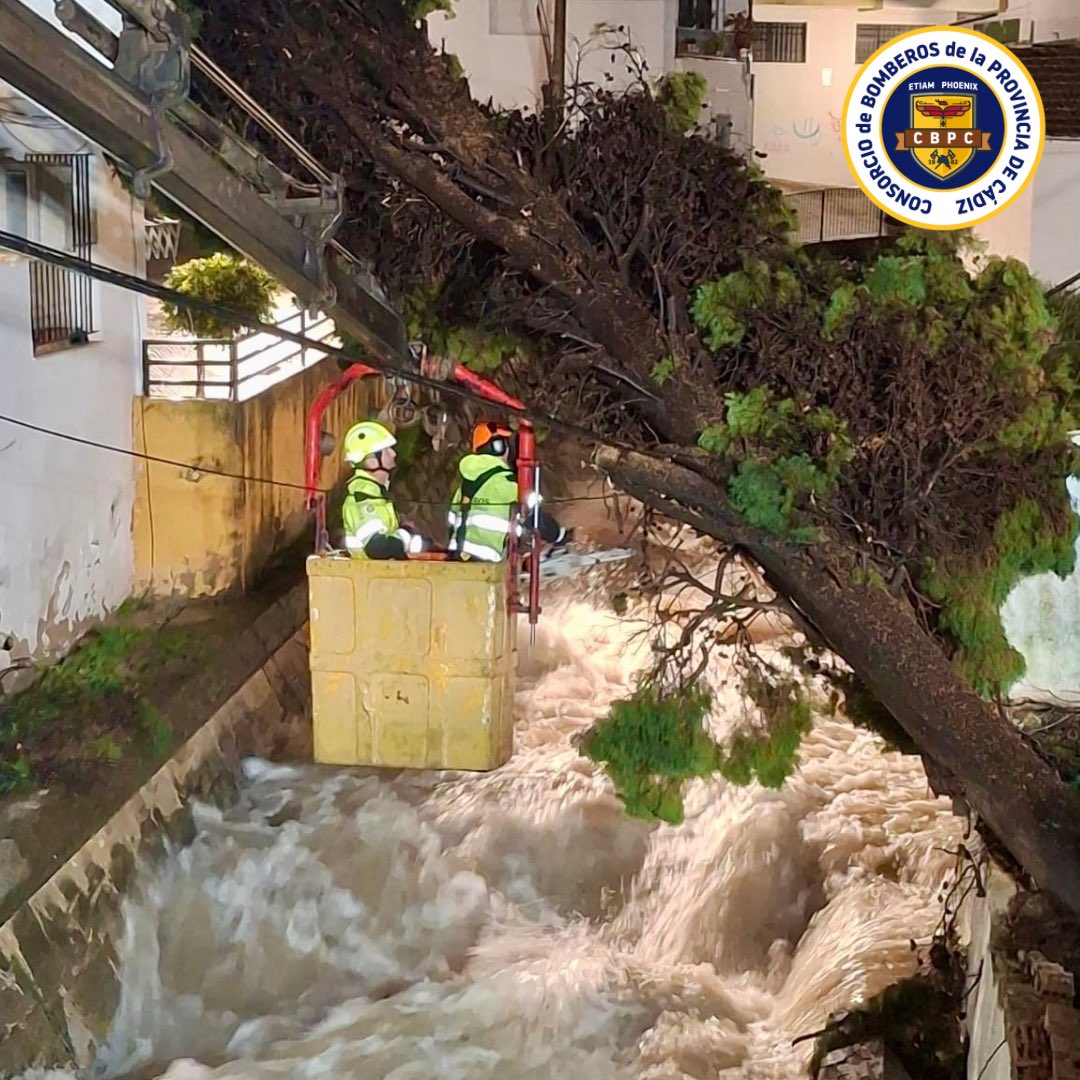 Efectivos del Consorcio de Bomberos de la Provincia de Cádiz (CBPC) han dado por concluidas en torno a las 6.30 horas de este viernes las labores iniciadas durante la noche en el río que atraviesa el municipio de Ubrique, tras el paso de la borrasca Leonardo.