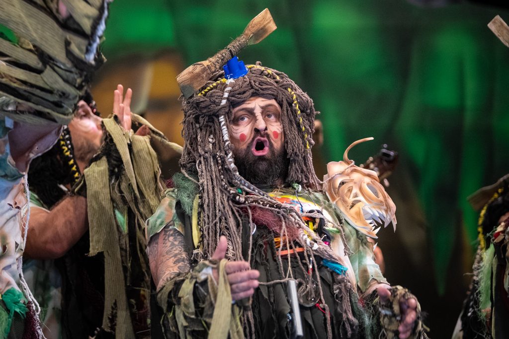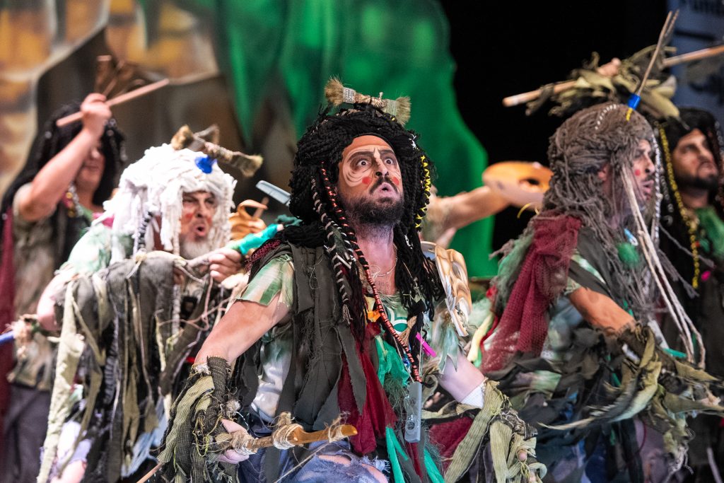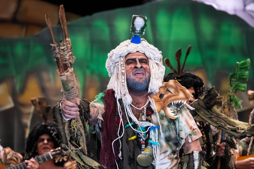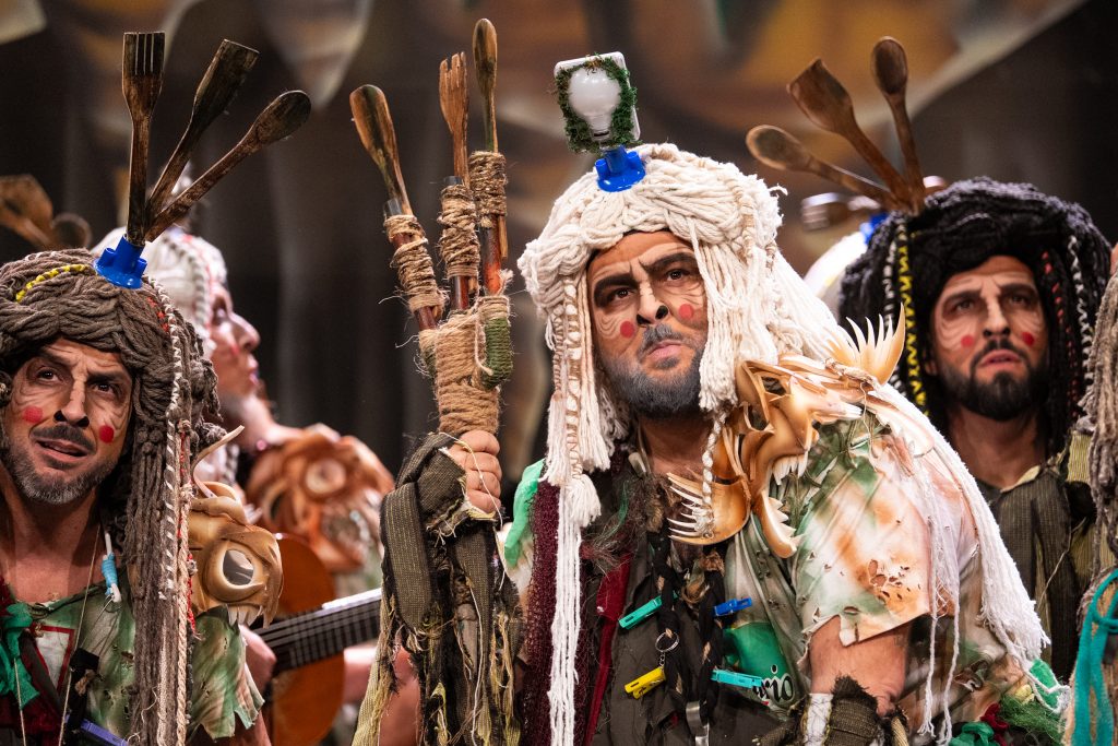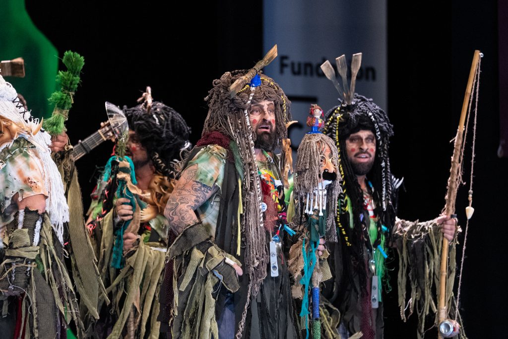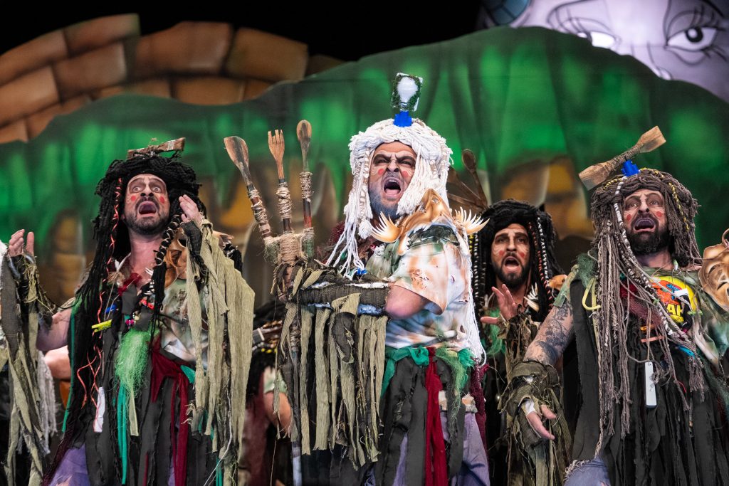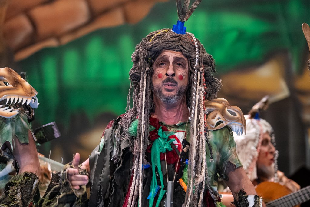 El tipo presenta a una tribu de trogloditas gaditanos, habitantes de una “edad de piedra ostionera”, que cambian la canoa por el autobús urbano y mantienen un lenguaje, unas costumbres y una mirada sobre la ciudad profundamente reconocibles. No se trata de un concepto especialmente llamativo en lo visual, pero sí coherente con el gaditanismo clásico que la chirigota de la Viña viene defendiendo desde hace años. La idea se mantiene con constancia durante toda la actuación, sin grandes giros ni rupturas.