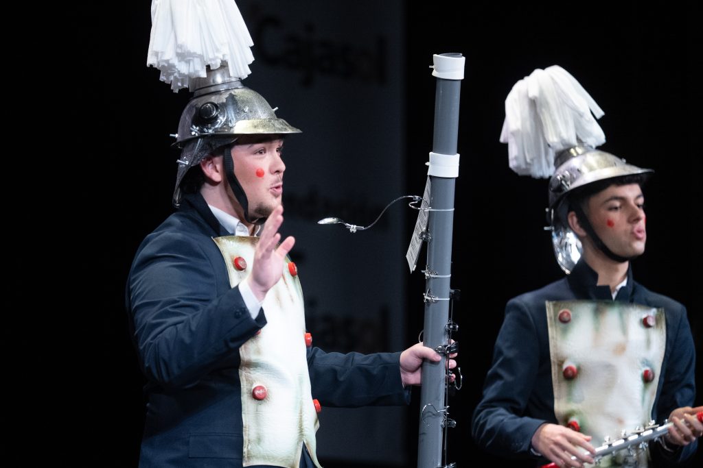 En ese cierre, la agrupación utilizó la idea de “mojarse” como metáfora de implicación social. Desde una voz juvenil, el texto llamó a posicionarse ante cuestiones como el acoso escolar, la educación, la sanidad, la igualdad y la convivencia, insistiendo en que el Carnaval también sirve para expresar compromiso. El mensaje se expuso de forma directa, manteniendo un enfoque formativo acorde a la categoría.