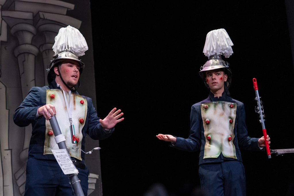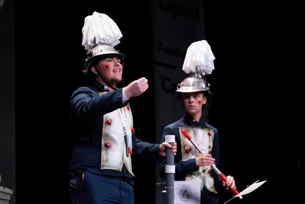 La parodia desarrolló un examen de acceso al conservatorio en clave humorística, jugando con conceptos musicales reinterpretados desde el desconocimiento y la lógica ingenua. Clave, compás, melodía o soprano fueron transformados en referencias domésticas y cotidianas, generando una secuencia ágil que conectó con la memoria colectiva de quienes han pasado por aulas similares. A partir de ahí, el cuarteto fue asociando compañeros ficticios a las notas de la escala musical, construyendo un relato coral donde cada perfil encontraba su espacio.
