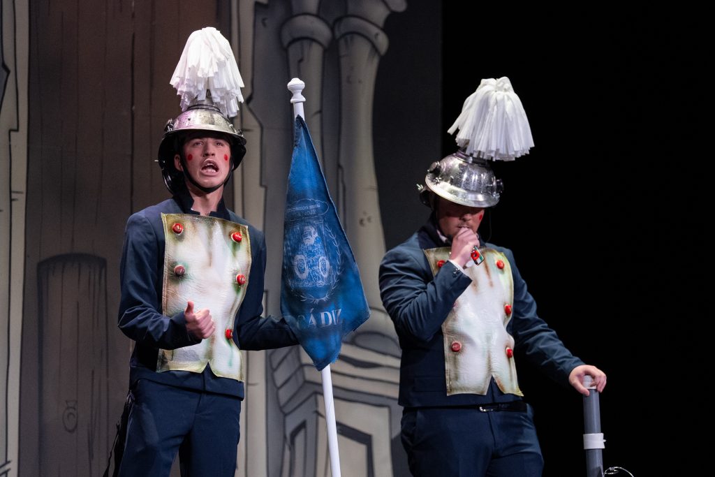En el tramo final, la lluvia y la “mojada” se convirtieron en metáfora central. El cuarteto jugó con la idea de empaparse no solo físicamente, sino también moralmente, utilizando la imagen del agua para invitar a posicionarse ante los problemas sociales. A través de cuplés y remates finales, se abordaron asuntos como la subida de precios, la precariedad cotidiana o la necesidad de implicarse en causas justas.