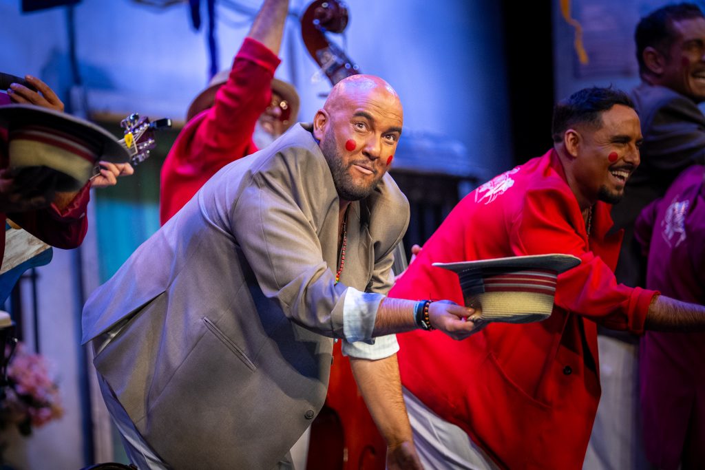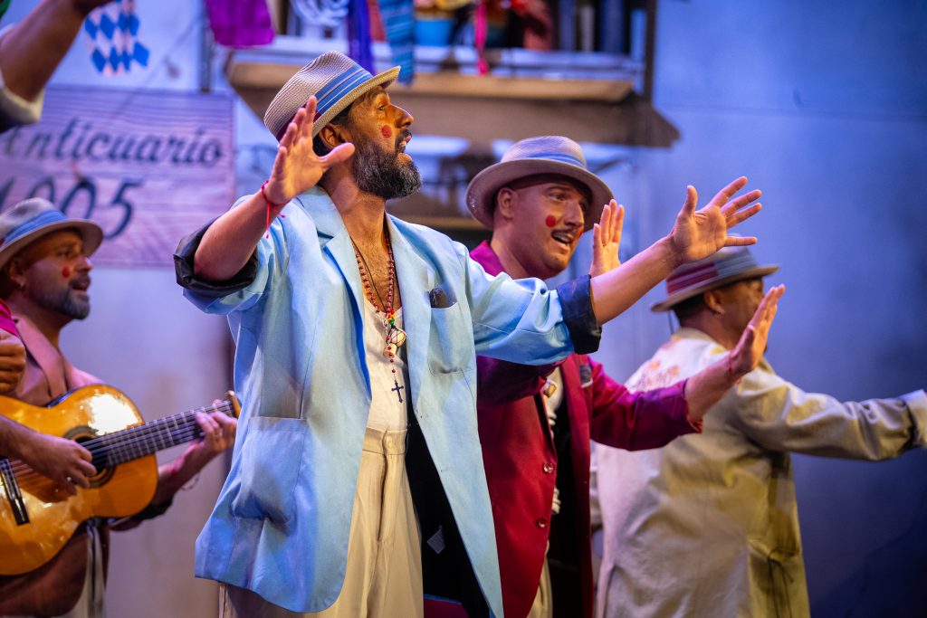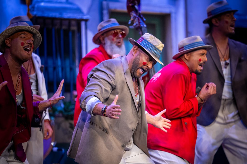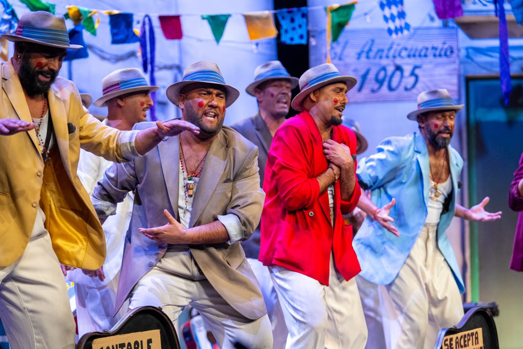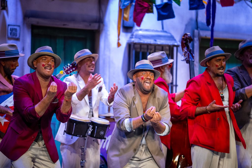 El telón se alzó para revelar un tipo cubano de músicos callejeros, con sombreros, guayaberas y guitarras decoradas con la bandera de Cuba, en un guiño explícito a la idea de Cádiz como “hermana rica” de La Habana. La presentación, con ritmos de son y guaracha, presentó el viaje a la Tacita como oportunidad para “buscarse algún dinero” cantando en la calle y tocando por la ciudad. El planteamiento jugó con la equivalencia cultural entre Cádiz y la capital cubana, fórmula que la comparsa y la chirigota han explorado en otras ediciones del concurso, y que permitió a la agrupación entrar por energía más que por construcción humorística.
