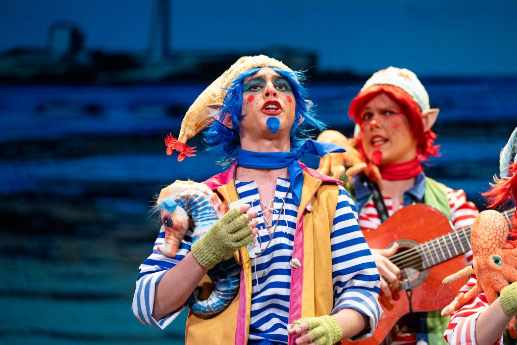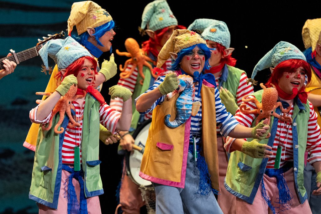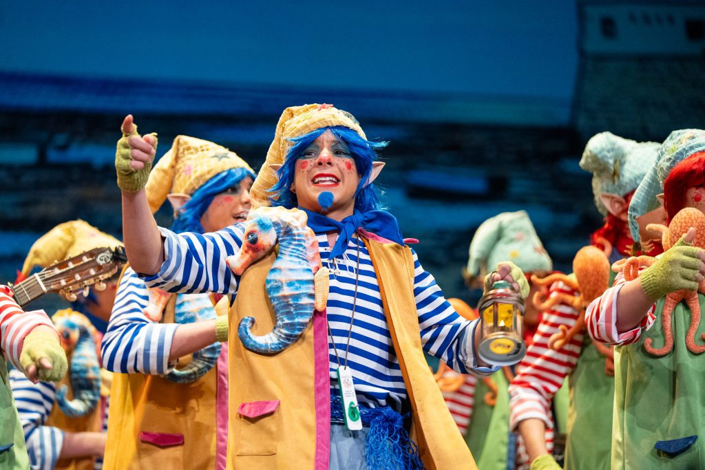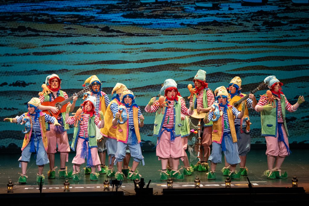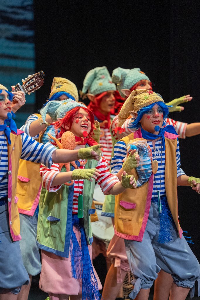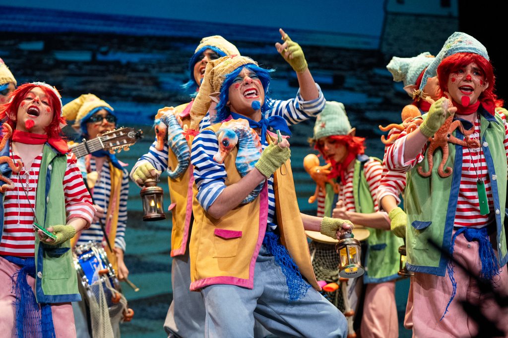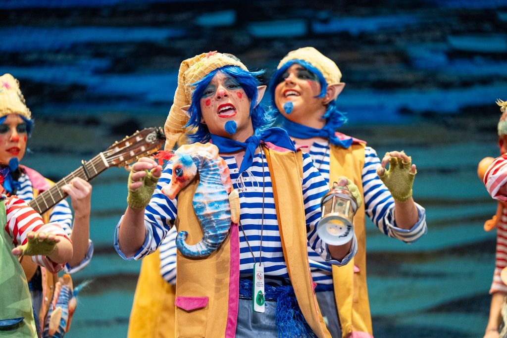 El tipo situó a los componentes como pequeños duendes que habitan desde hace siglos en los castillos de San Sebastián y Santa Catalina, guardianes invisibles de la Caleta y testigos del paso del tiempo. Desde esa premisa, la puesta en escena construyó un relato reconocible para el público local, apoyado en elementos simbólicos como el faro, la muralla y la playa, integrados de forma natural en el desarrollo del repertorio. La presentación ya dejó clara esa convivencia entre lo mágico y lo cotidiano, con letras que hablaban del cansancio de “tres siglos trabajando” y del deseo de jubilarse sin abandonar el cuidado de Cádiz.