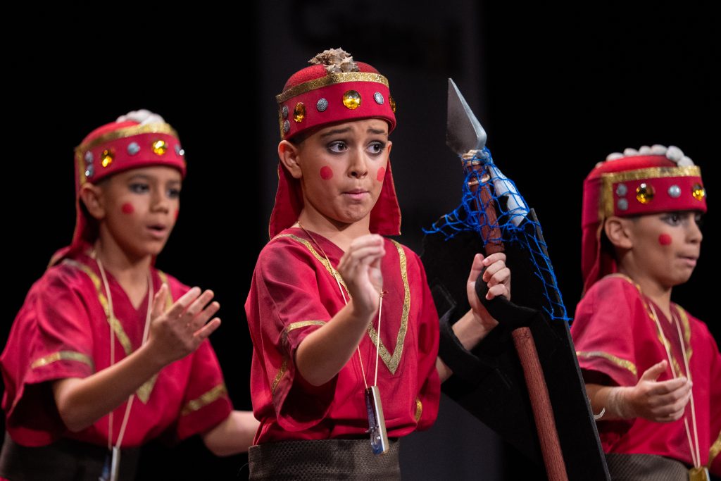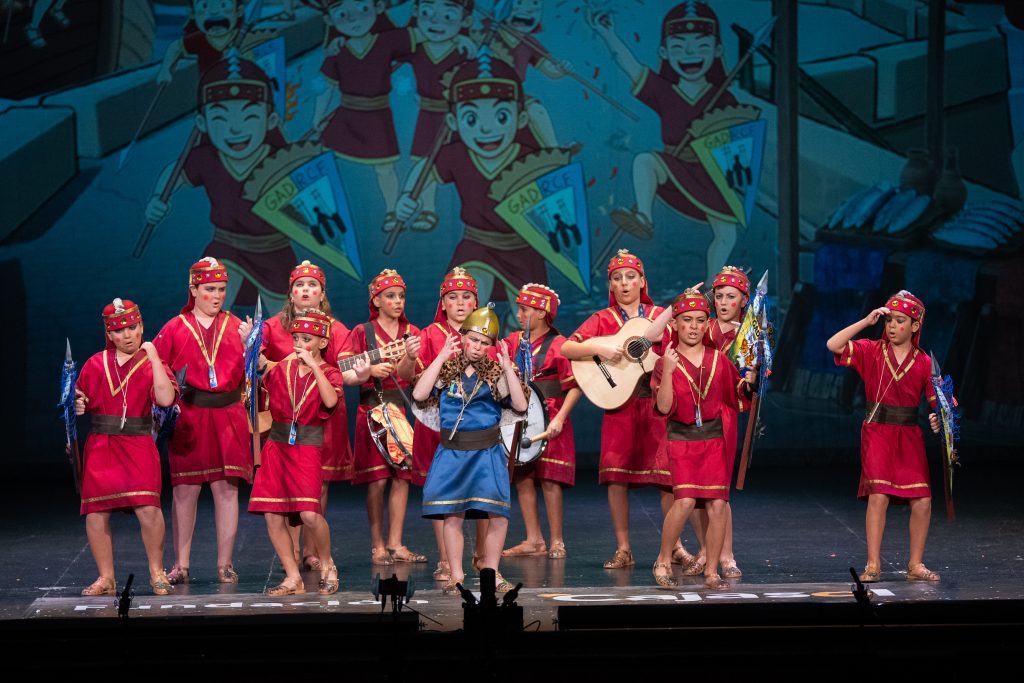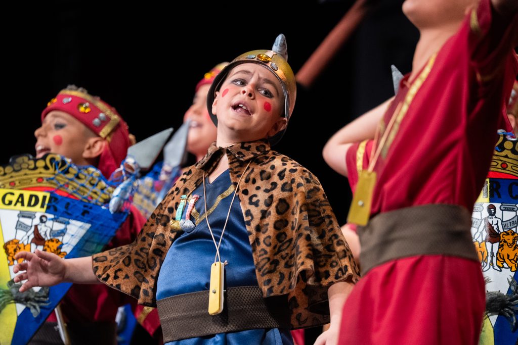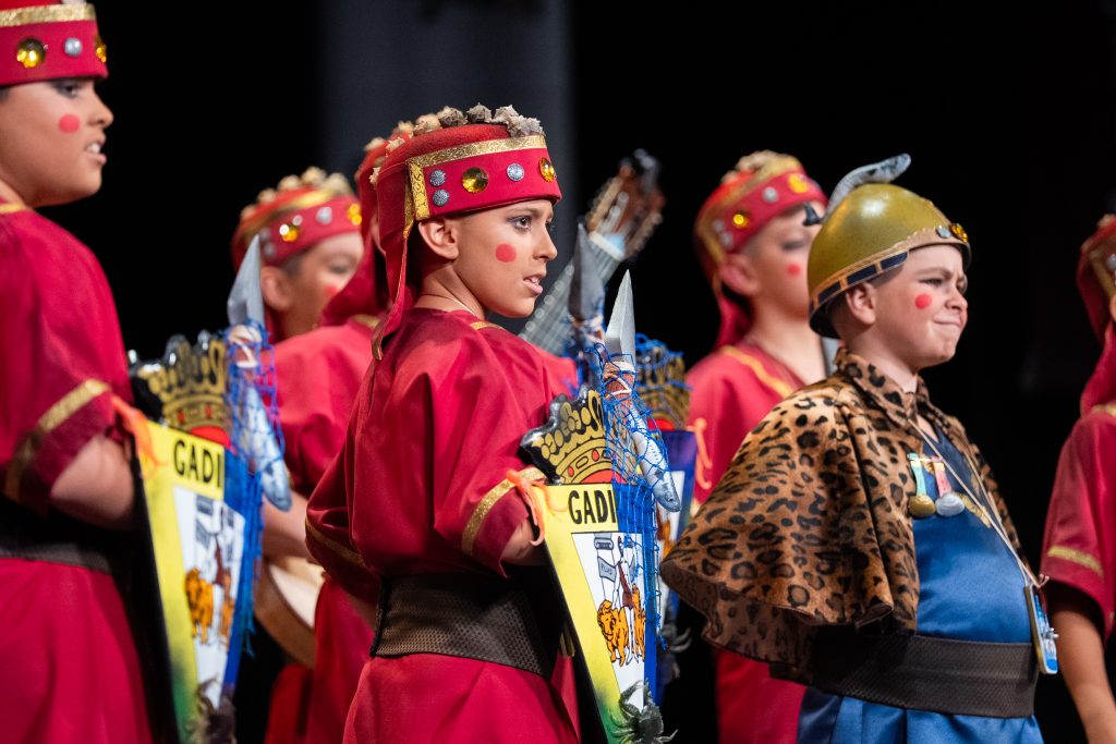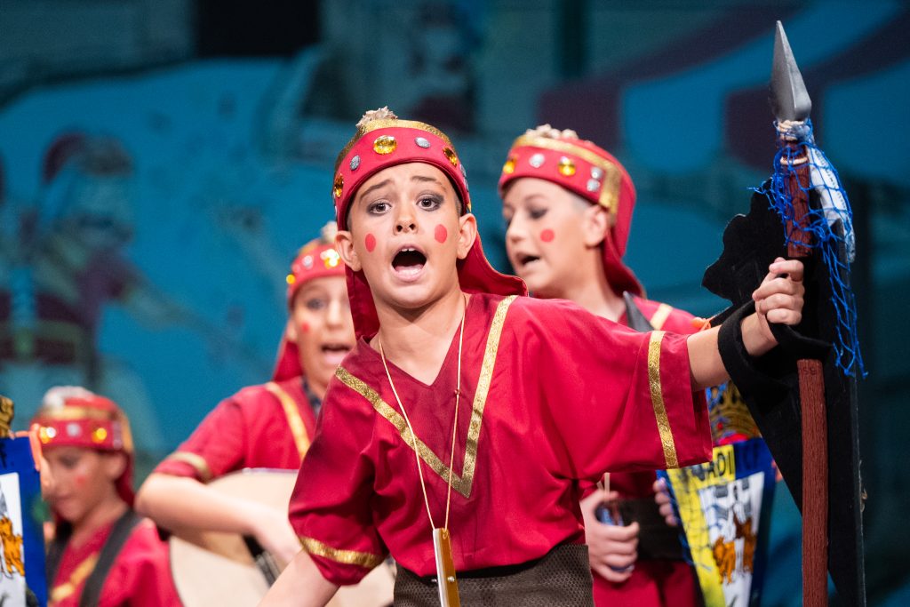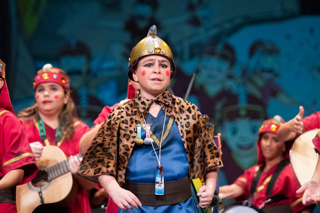 El personaje del general fenicio, serio y hierático, se convirtió en uno de los elementos más reconocibles de la puesta en escena. Su expresión constante y su presencia marcial funcionaron como contrapunto cómico frente al desenfado del resto del grupo, aportando un hilo conductor visual que se mantuvo durante toda la actuación.