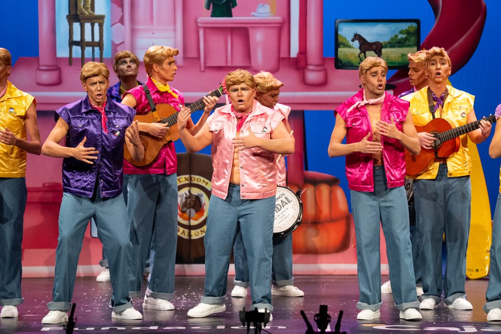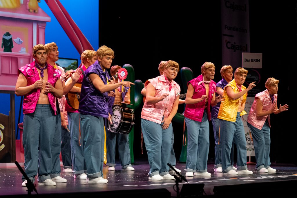 La chirigota Los Ken. Una chirigota en deconstrucción, procedente de la gaditana calle Lubet, regresó al Falla con una propuesta estilística y discursiva reconocible dentro de su línea, tras estrenarse el pasado año con Martín el encantador. La idea despliega un conjunto de Ken reprogramados tras el fenómeno Barbie para convertirse en varones responsables, aliados y de moral evolucionada. Un concepto contemporáneo y con potencial tanto para la sátira como para la crítica social.