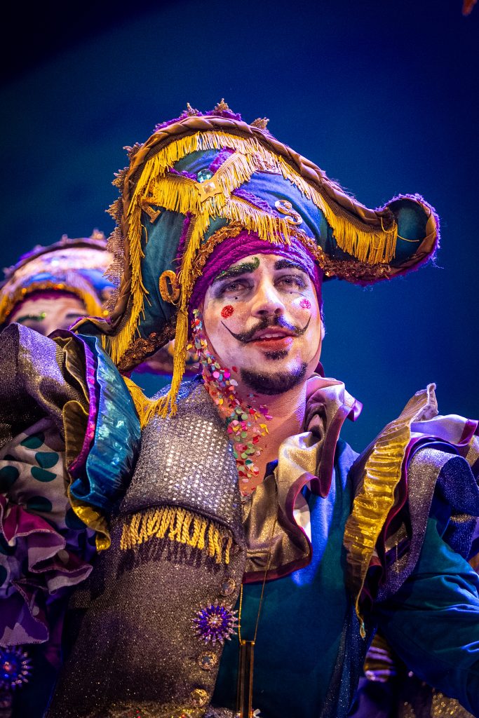 En el plano vocal, la comparsa sonó afinada, con empaste reconocible y un estilo ya definido por la firma autoral. La escenografía aportó identidad, el maquillaje fue cuidado y el concepto resultó claro desde el inicio. En términos de recepción, el público acompañó y el pase se consolidó como uno de los más completos de la noche.