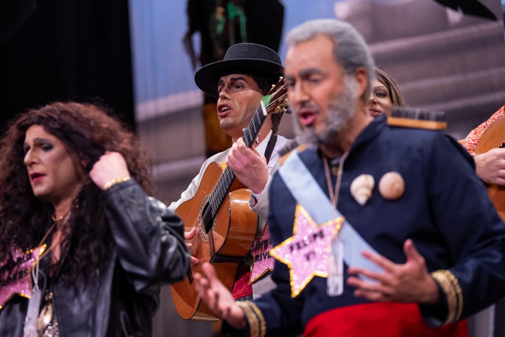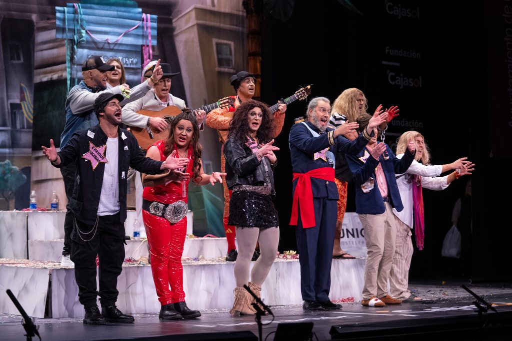 La chirigota gaditana recurrió al universo celebrity para articular una propuesta ligera y reconocible, con un repertorio que funcionó en idea pero no encontró vuelo competitivo en el Gran Teatro Falla