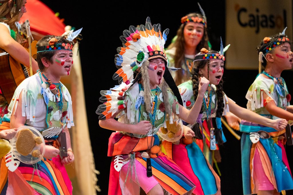 Los Pieles Rojas de la Caleta llenan de color y conciencia social la Gran Final infantil del COAC 2026