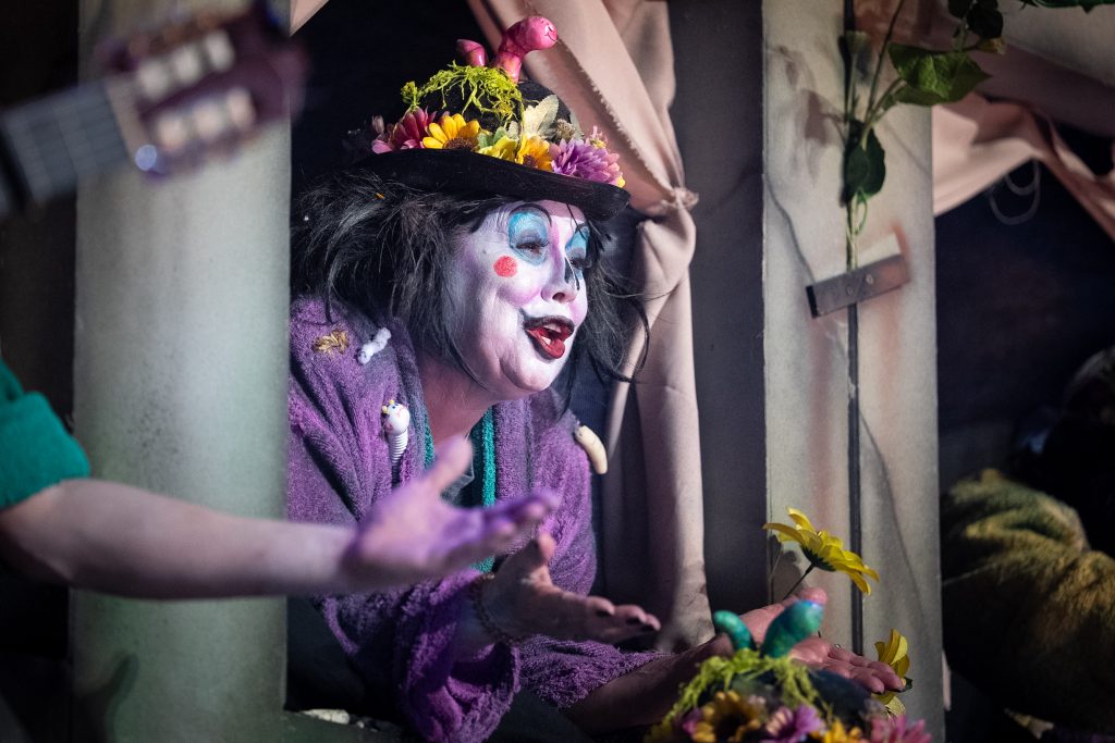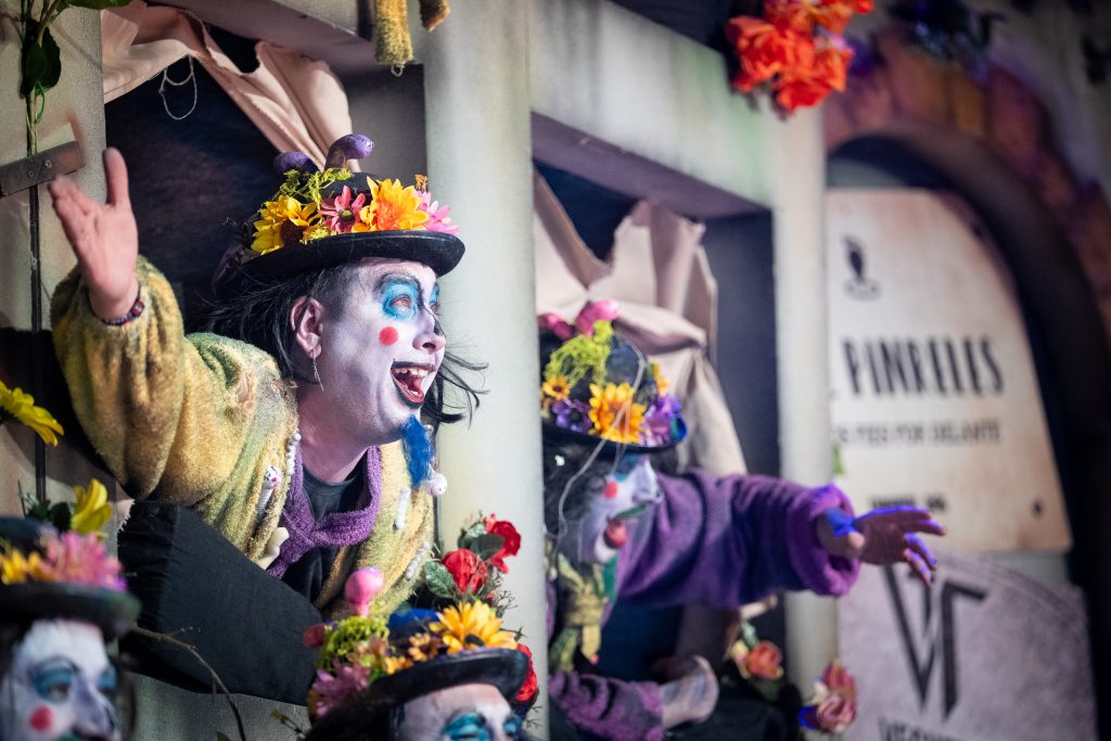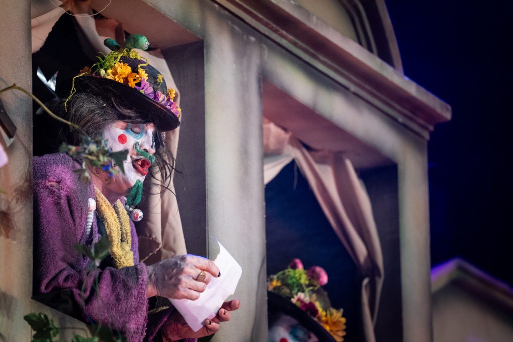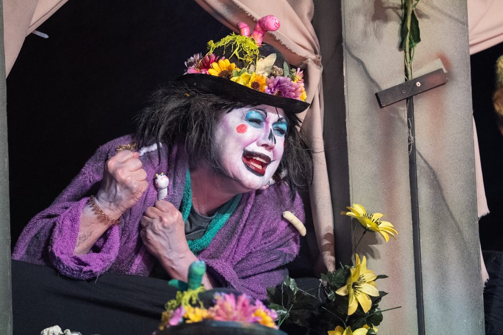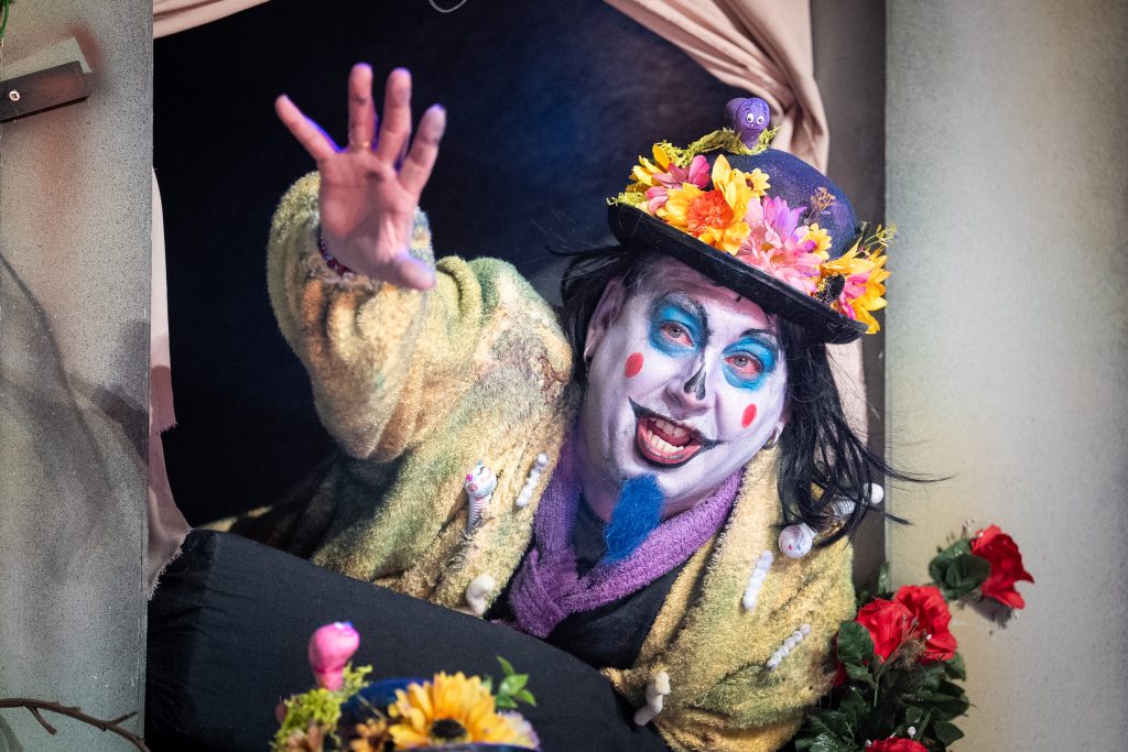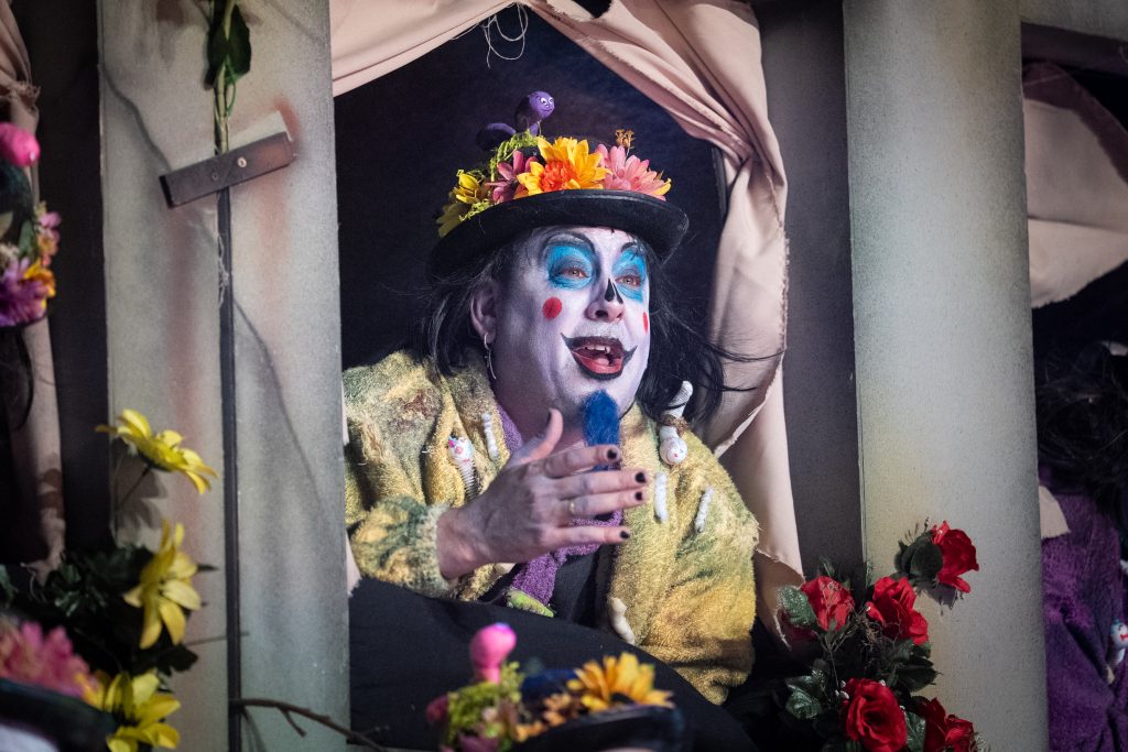Desde la presentación, la chirigota dejó claras sus intenciones. El arranque fue movido, con ritmo y una interpretación muy sólida que logró predisponer al teatro desde el primer minuto. El tipo, reconocible y fácilmente entendible, permitió jugar con la idea de la muerte desde una óptica humorística muy terrenal, con constantes guiños a la actualidad y a problemas cotidianos. El cementerio se convierte así en un espacio escénico versátil, utilizado como excusa para lanzar mensajes y remates directos.