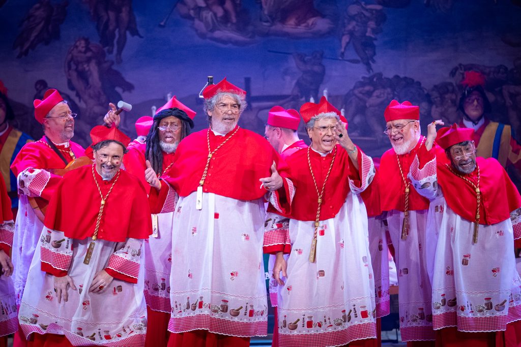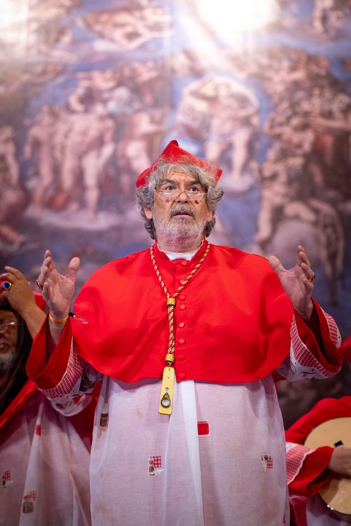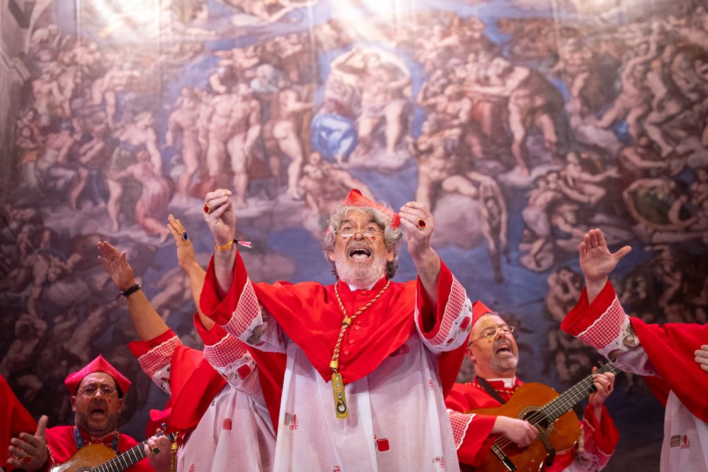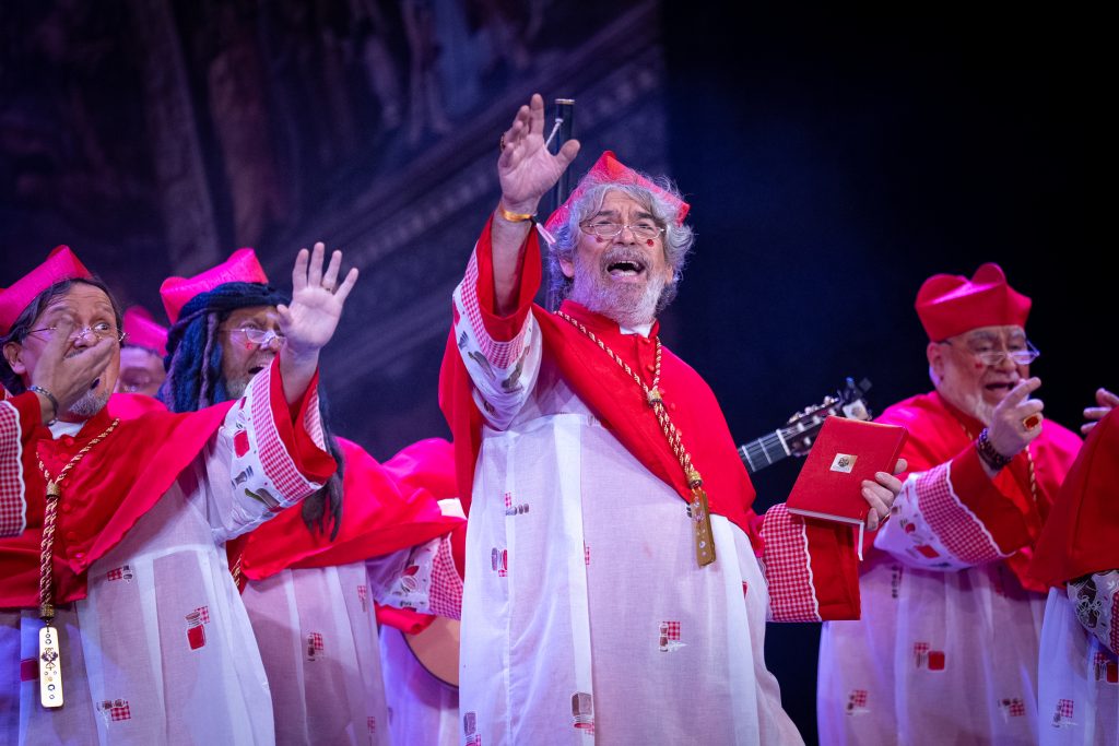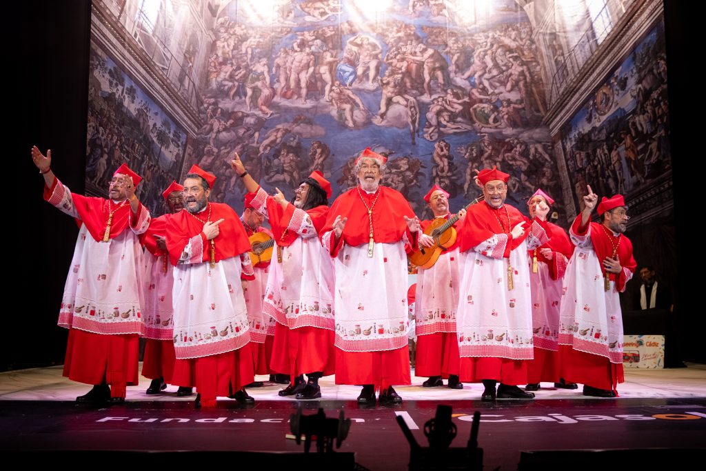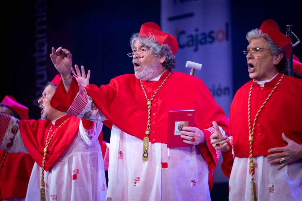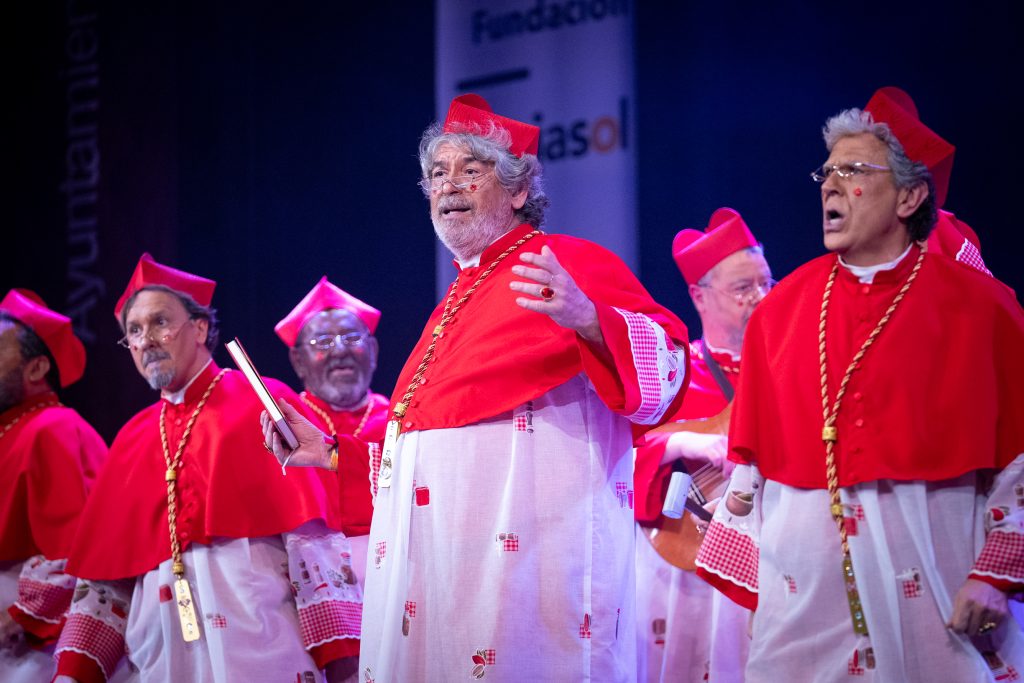 El tipo vuelve a situar a la chirigota en un cónclave papal, con los cardenales reunidos en El Vaticano para elegir al nuevo pontífice tras la muerte del anterior. La fumata negra, recurrente durante todo el repertorio, actúa como hilo conductor de una idea clara, reconocible y muy identificable con el universo creativo del Yuyu. Sin embargo, esa misma claridad conceptual termina jugando en contra del conjunto, ya que el recorrido del tipo resulta limitado y no termina de evolucionar a lo largo de la actuación.