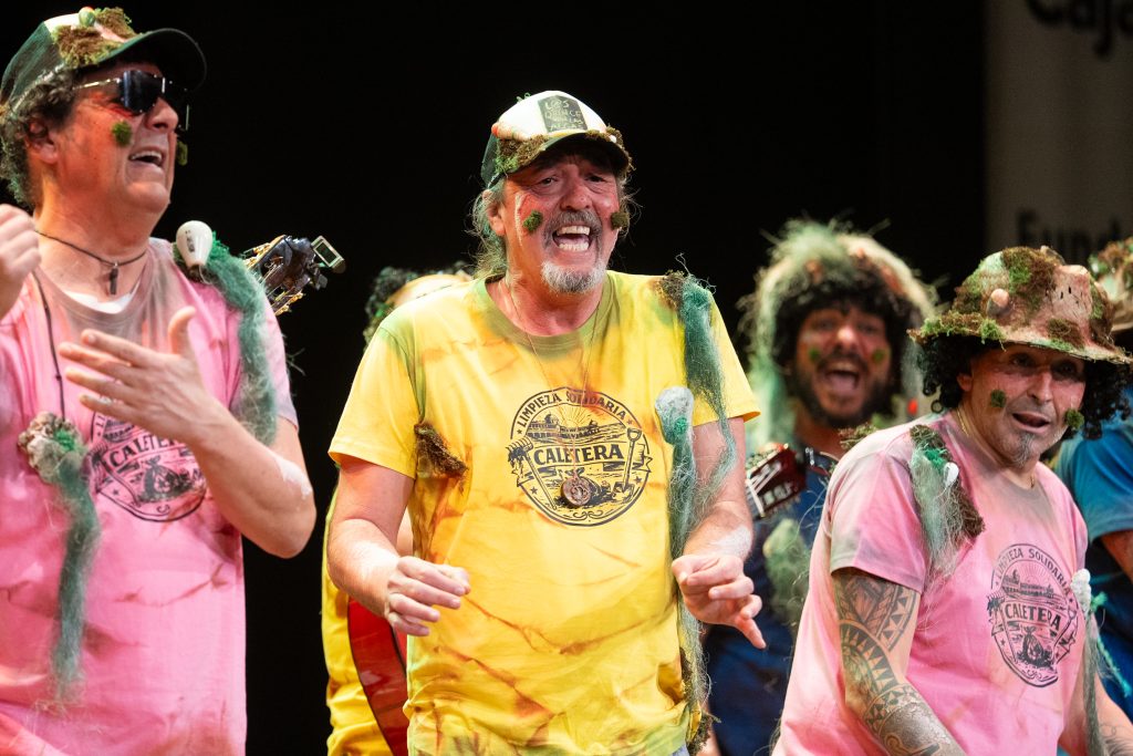 El tipo los sitúa como un comando improvisado de activistas caleteros dedicados a retirar basura, colillas y las citadas algas. La presentación, pese a su estética colorida y al forillo que lleva el alga hasta el mismo balneario, no termina de arrancar con la contundencia esperada. La escena oscila entre la denuncia ambiental y el costumbrismo gaditano, con un tono híbrido que el público tarda en descifrar y que el grupo no acaba de rematar en forma de golpe carnavalesco. Aun así, sobreviven ciertos detalles marca de la casa: comparaciones imposibles, frases descolocadas y guiños metacarnavalescos.