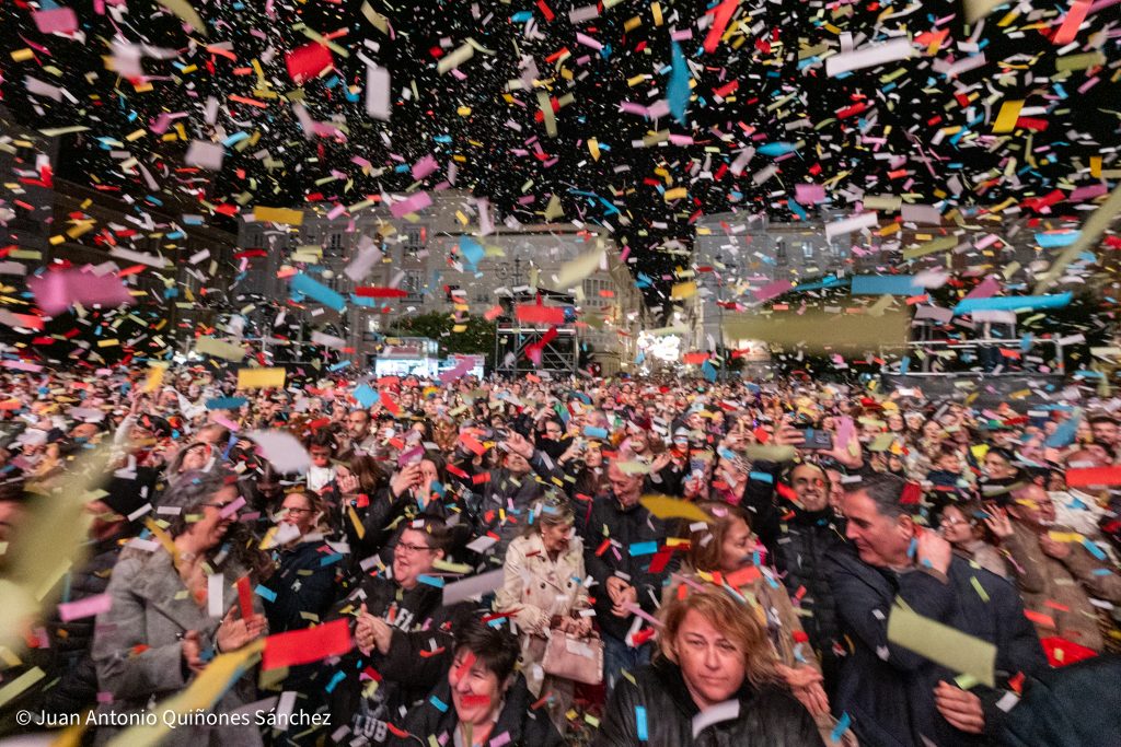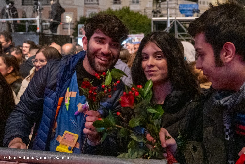 En el tramo final, el pregón giró hacia lo personal. Manu Sánchez habló de su relación con Cádiz, de su familia y de cómo el Carnaval había marcado su vida. Cuando parecía que el acto se acercaba a su cierre, el pregonero sorprendió al público al pedir en matrimonio a su pareja, Lorena Sánchez, desde el balcón del Ayuntamiento simulado sobre el escenario de San Antonio. Tras el “sí, quiero”, el alcalde de Cádiz, Bruno García, ofició el enlace civil en el mismo acto, convirtiendo el pregón en una boda pública ante la plaza abarrotada.