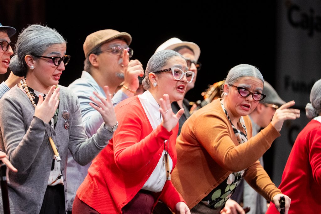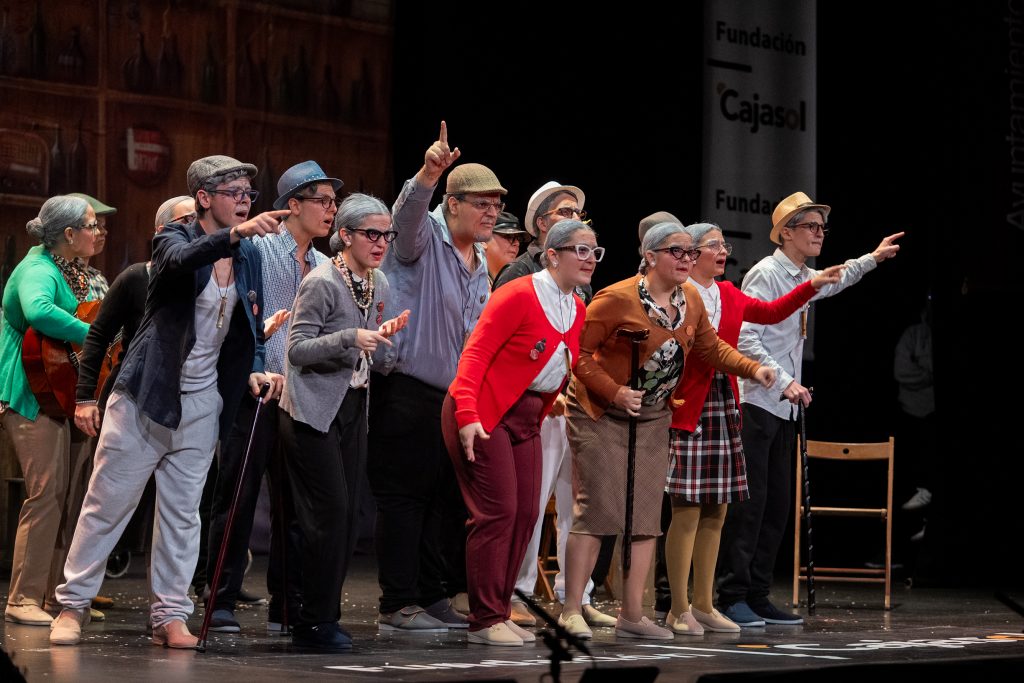 La tanda de cuplés aportó un cambio de registro hacia lo cotidiano y lo humorístico. El primero jugó con la expectativa generada en torno a un fichaje del Cádiz CF, resuelto desde el contraste entre la ilusión y la sorpresa. El segundo se centró en los gustos musicales de las nuevas generaciones, planteando el choque entre referencias actuales y el imaginario musical de quienes crecieron con otros estilos. Ambos cuplés mantuvieron un tono reconocible y ligero, encajado en el tipo.