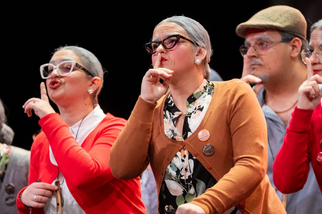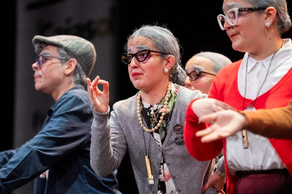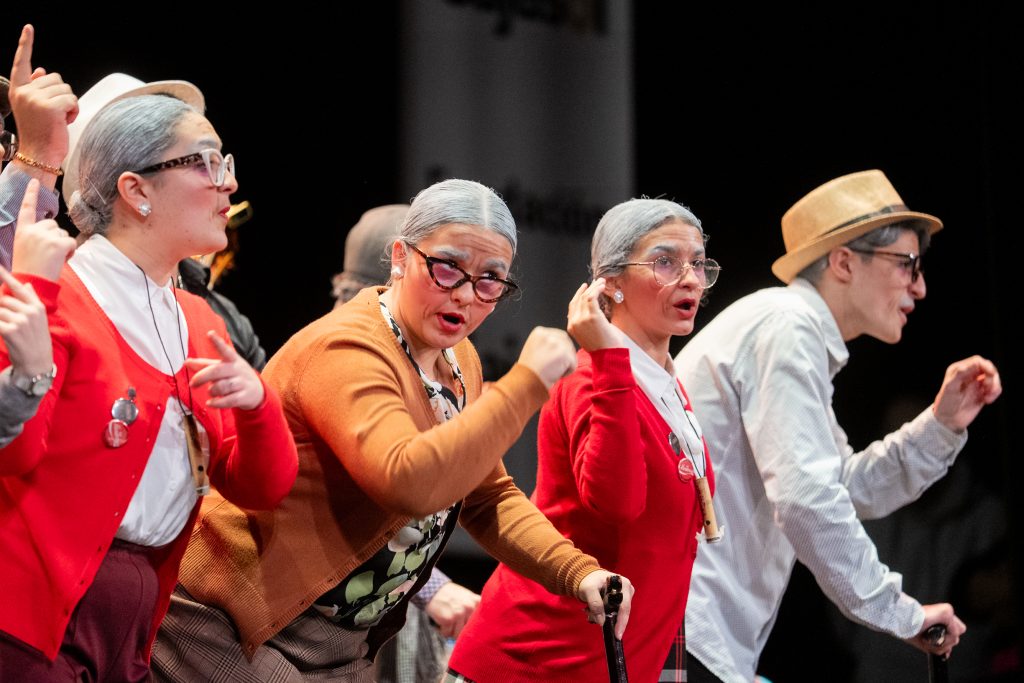 El popurrí amplió el discurso de la comparsa hacia una reflexión sobre la evolución del Carnaval, la masificación, los cambios en las formas de cantar y la convivencia entre tradición y modernidad. La sucesión de escenas y comentarios se articuló como una conversación entre personajes veteranos que observan el presente con distancia crítica, sin negar el valor de la fiesta actual. El cierre recuperó el tono evocador, despidiéndose desde la peña y reafirmando el vínculo con el Carnaval como espacio compartido.