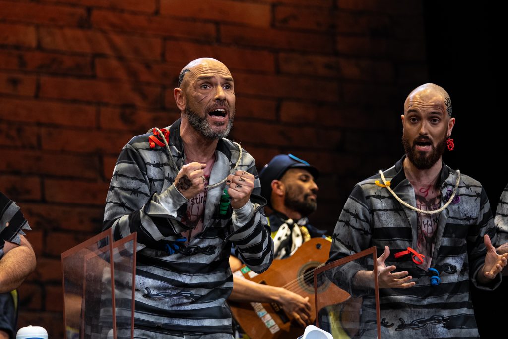 La chirigota ‘Mírala cara a cara’, procedente de Sevilla, compareció en el Gran Teatro Falla como penúltima agrupación de la última función de preliminares del COAC 2026 con una propuesta ambientada en una prisión. Con letra y dirección de Raúl Calzado Pérez y música de Miguel Ángel Calero Gómez y Antonio García Granado, el grupo regresa al Concurso tras su participación en 2025 con ‘Pa colgaera la mía’, apostando esta vez por un tipo de presos durante un régimen de visitas.
