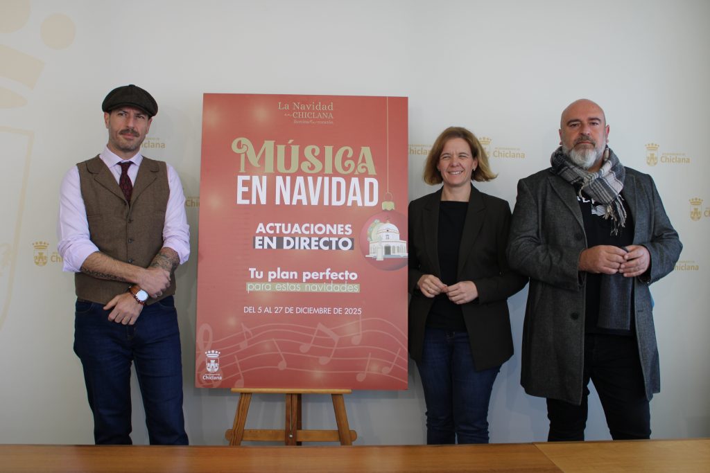 ‘Música en Navidad’ llevará 12 actuaciones en directo al centro de Chiclana del 5 al 27 de diciembre, una iniciativa del Ayuntamiento que busca dinamizar las zonas comerciales y fomentar la economía local durante la campaña navideña. La delegada municipal de Fomento Económico, Manuela Pérez, ha presentado la programación acompañada de los artistas Alfred Romero y Alan Solo, subrayando la apuesta municipal por el talento local y por la actividad cultural en las calles.