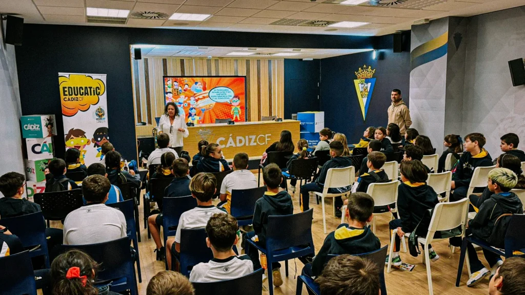 Dirigido a jóvenes de entre 10 y 12 años, EDUCATiC Cádiz CF proporciona recursos y herramientas para gestionar la tecnología de forma equilibrada, segura y consciente en un momento clave del desarrollo personal y digital. El programa cuenta con el apoyo de Cash Fresh, Empresas ON, Inés Rosales y Bounce Jump, así como con la implicación activa de Proyecto Hombre y Cruz Roja Juventud Cádiz.
