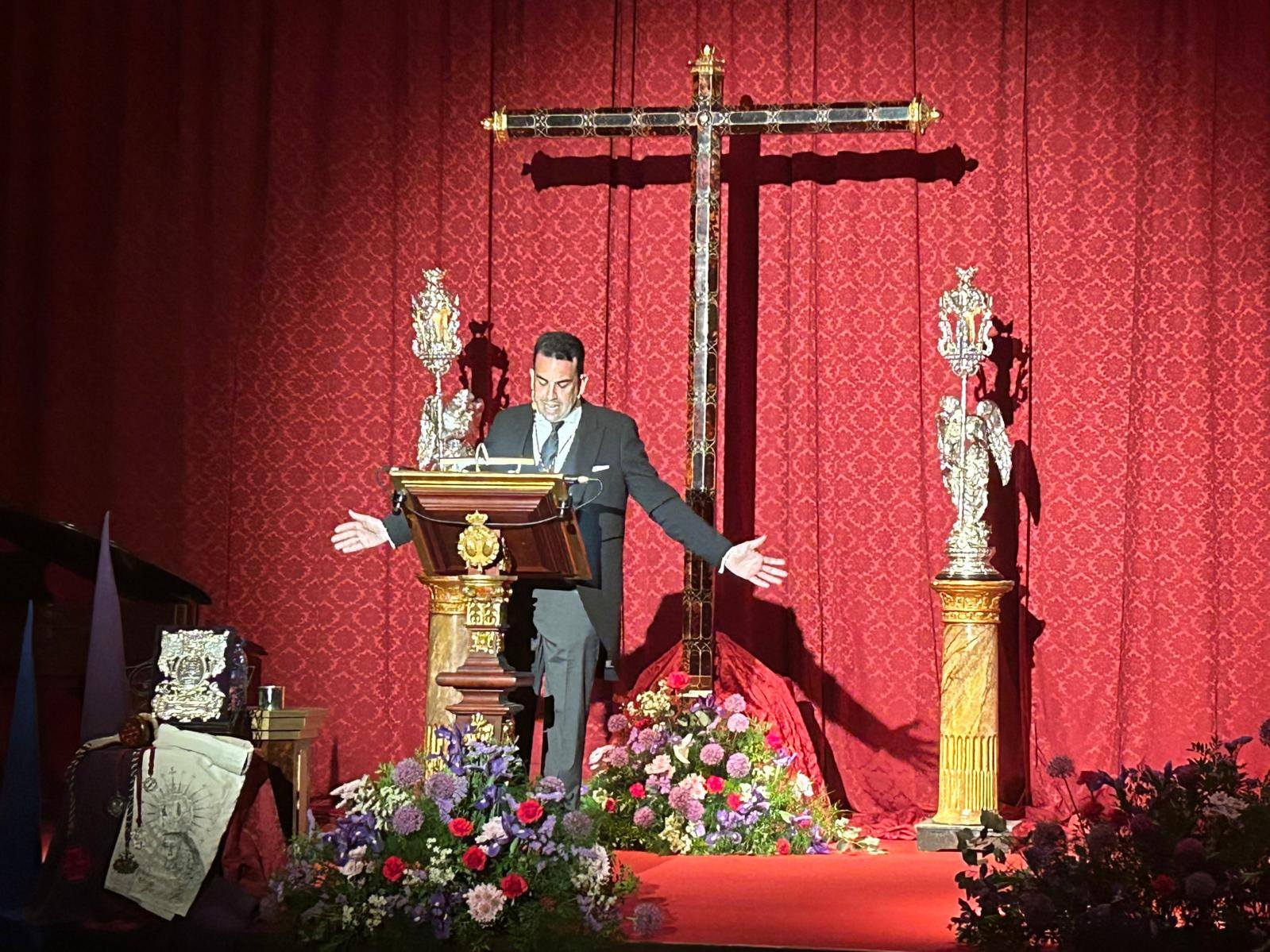 El acto fue presentado por el cofrade sanluqueño Gabriel Espinar, quien introdujo la figura del pregonero ante los asistentes. Durante su intervención, Óscar Díaz centró su discurso en la tradición cofrade de la ciudad y en el significado que la Semana Santa tiene para los vecinos y para las corporaciones penitenciales.
