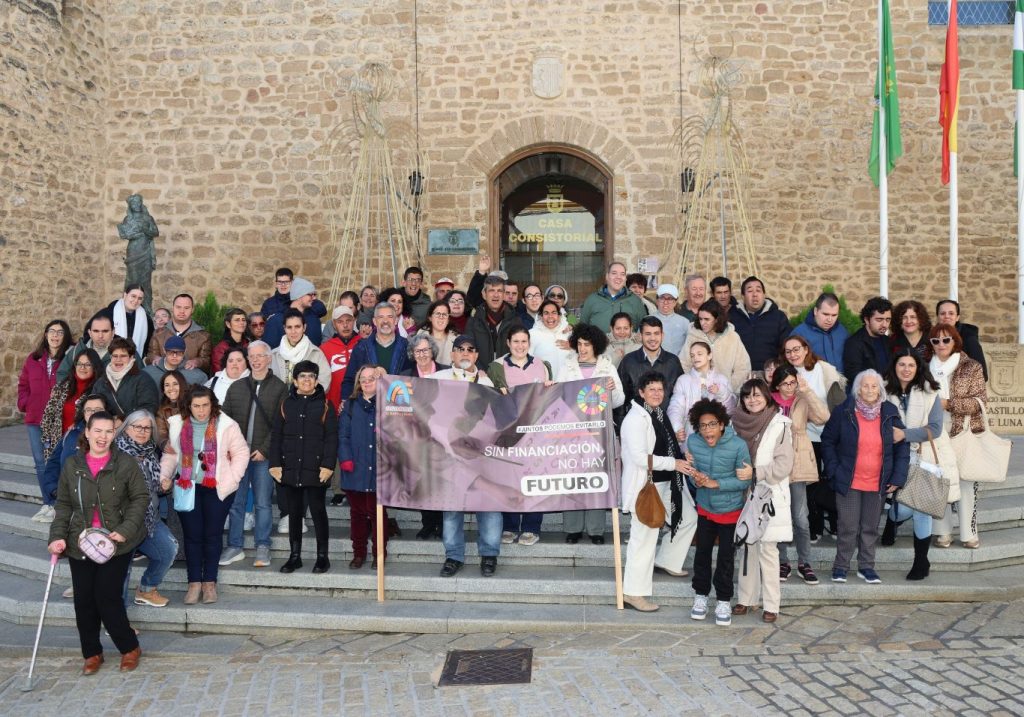 El acto finalizó con la entrega al alcalde de varios detalles elaborados en los talleres ocupacionales del Complejo Pilar Varo, seguida de una fotografía conjunta en la escalinata del Castillo de Luna junto a la pancarta con el lema “#Juntospodemosevitarlo. Sin financiación no hay futuro”.