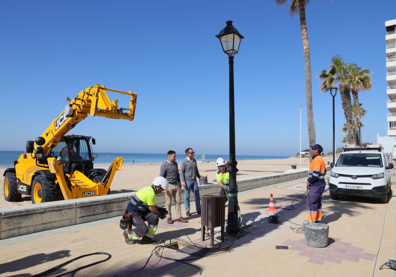 La renovación del alumbrado del paseo marítimo de Rota sustituirá 95 farolas por 86 luminarias LED más eficientes, reducirá el consumo energético en más de un 60 % y estará finalizada antes del verano.