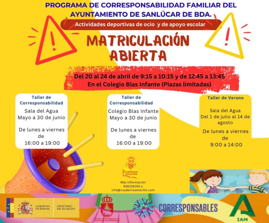 El Ayuntamiento de Sanlúcar de Barrameda ha abierto el plazo de inscripción para tres talleres dirigidos a niños y niñas de entre 5 y 12 años dentro del Programa de Corresponsabilidad Familiar 2026, una iniciativa impulsada por la Delegación de Igualdad.