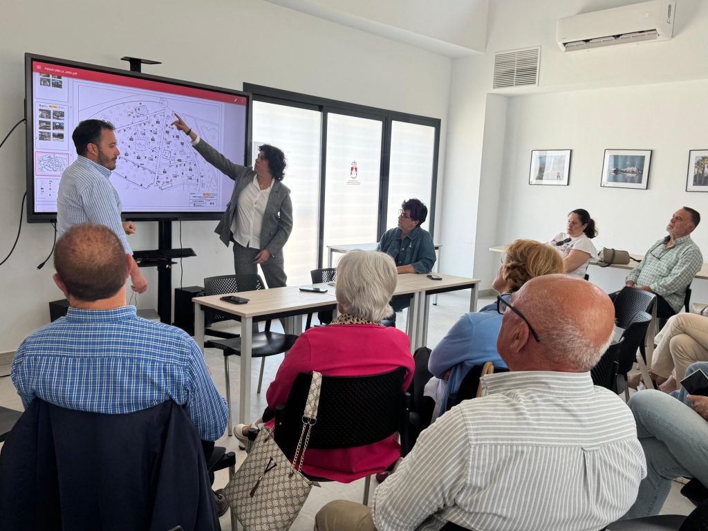 La alcaldesa, Carmen Álvarez, mantuvo una reunión con residentes de la zona para explicar los detalles de esta intervención, que tiene como objetivo mejorar este espacio público mediante una actuación integral basada en criterios de sostenibilidad y renaturalización.