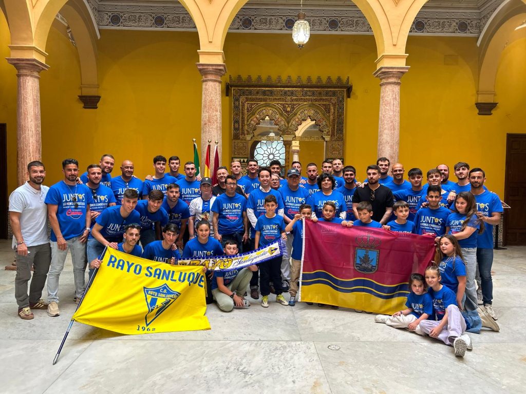 El Ayuntamiento de Sanlúcar de Barrameda ha ofrecido una recepción oficial al Rayo Sanluqueño en el Palacio Municipal para celebrar su reciente ascenso a División de Honor. El acto estuvo presidido por la alcaldesa, Carmen Álvarez, acompañada por el delegado de Deportes, David González, y contó con la presencia de la directiva, el cuerpo técnico, los jugadores y aficionados del club.