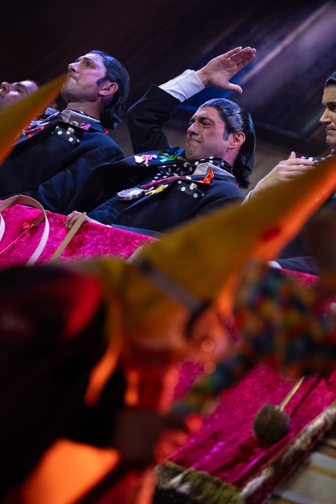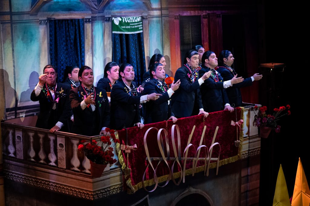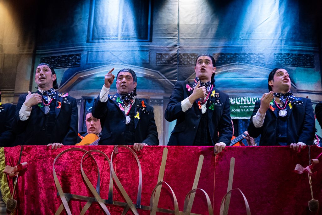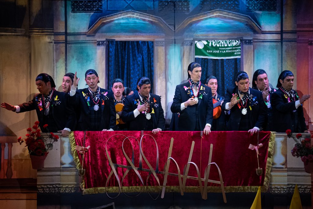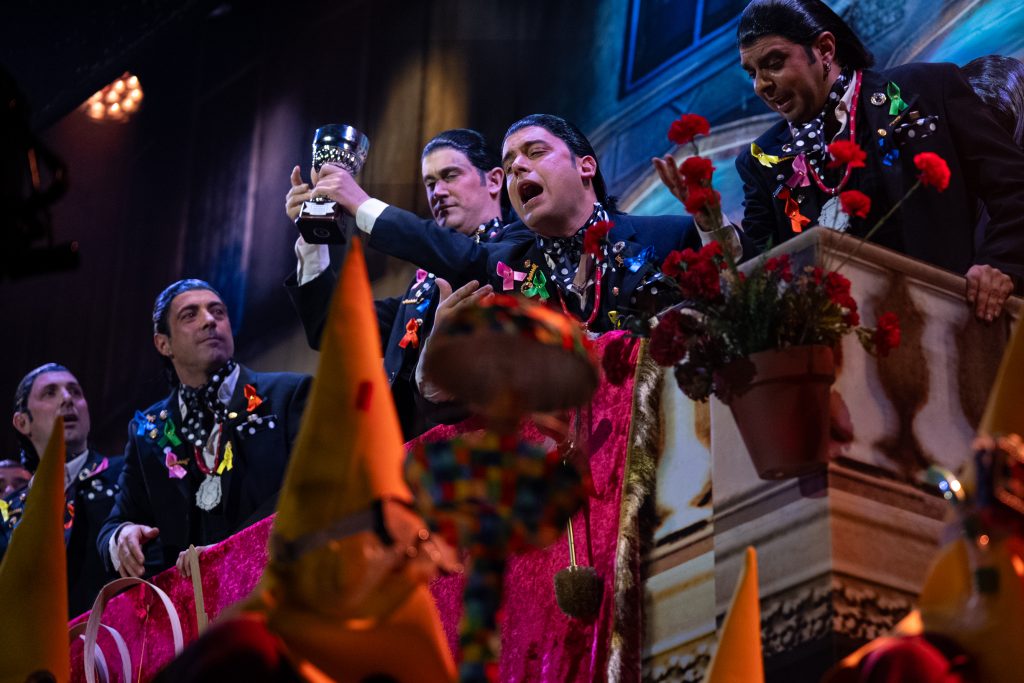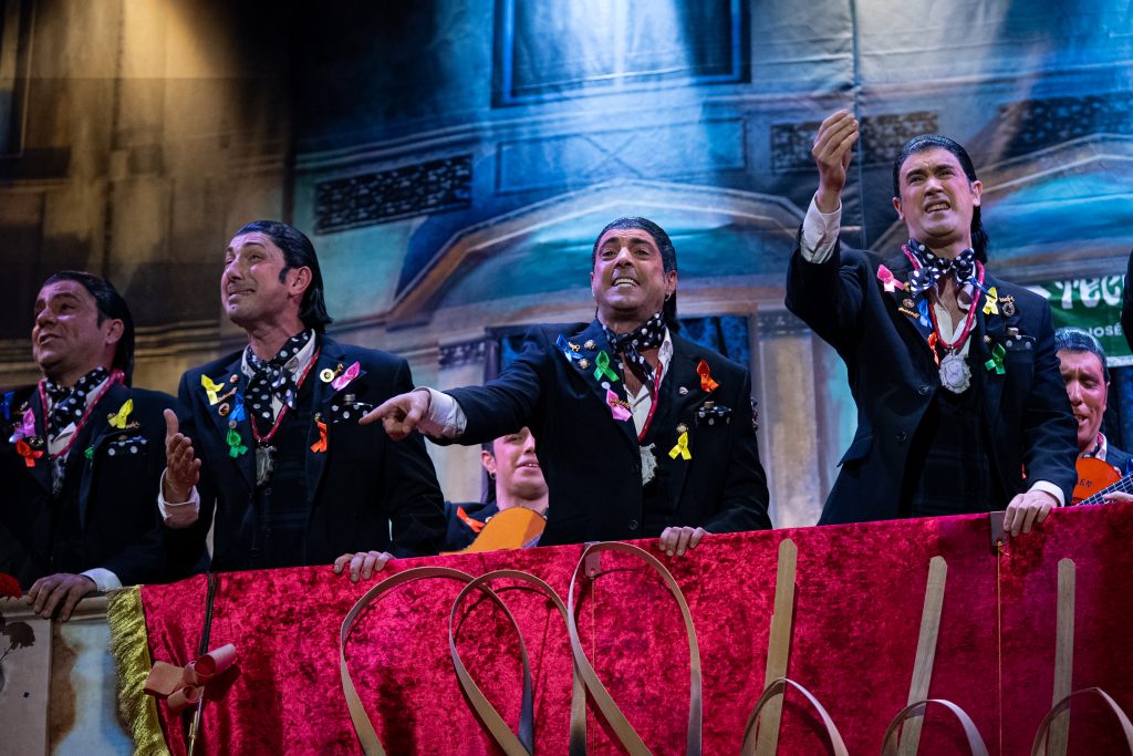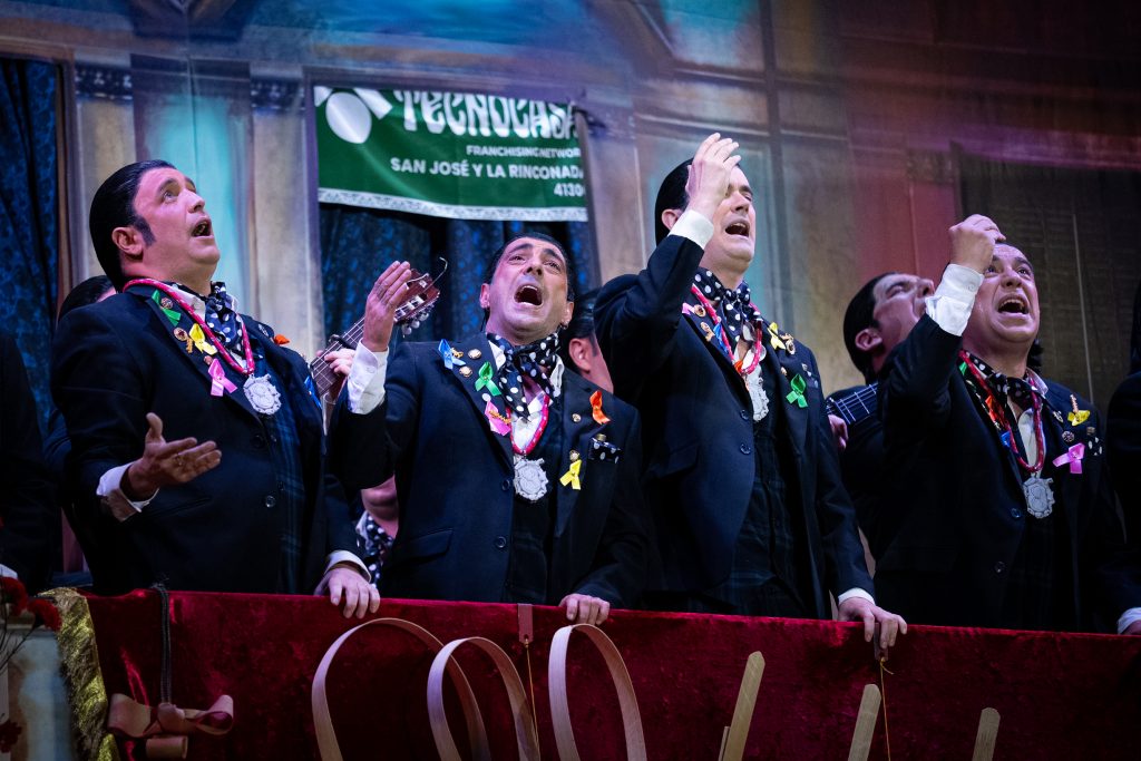 El tipo de saeteros que cantan en Carnaval está perfectamente definido desde el primer segundo. La presentación vuelve a ser una pieza clave del repertorio, con una integración muy inteligente de la música cofrade, el silencio como recurso dramático y una letra que explica sin rodeos por qué estas saetas suenan en febrero. No hay ajustes ni cambios respecto al primer pase: no los necesita. Funciona por ritmo, por afinación y por una idea clara que vertebra toda la actuación.