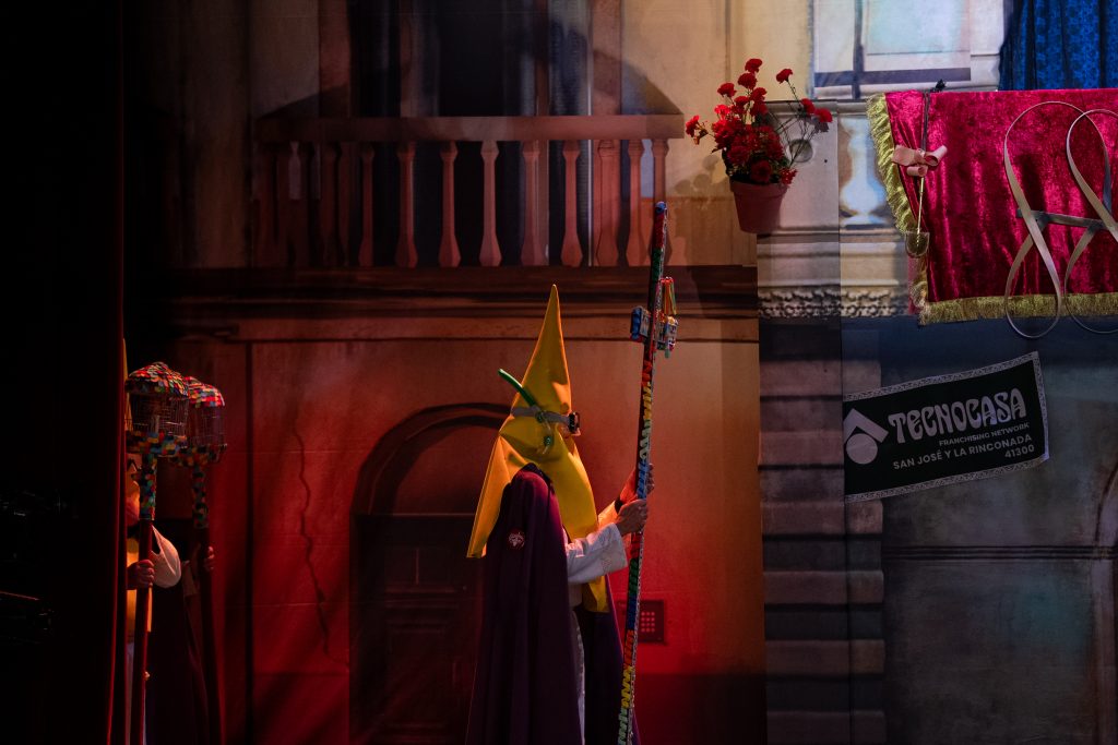 El estribillo, pegadizo y muy reconocible, refuerza el tono humorístico y sirve como cierre natural de la tanda de cuplés, manteniendo el ritmo alto de la actuación. El popurrí es una auténtica exhibición de pamplinas bien hiladas, con una densidad de golpes muy elevada y sin un solo bajón. La chirigota exprime al máximo el imaginario cofrade, incorporando referencias actuales, tecnología, redes sociales y situaciones reconocibles, siempre desde el humor y el disparate controlado.
